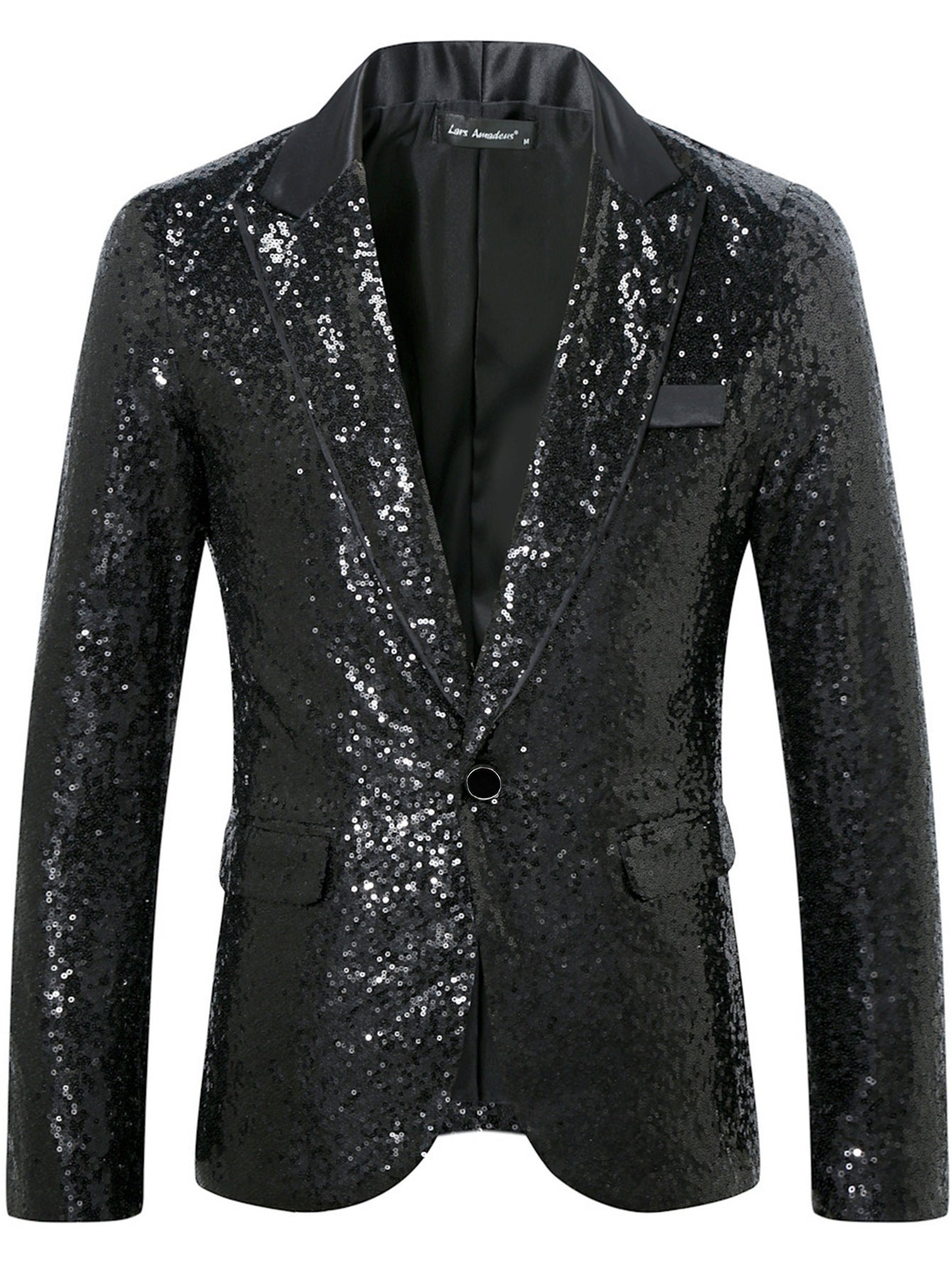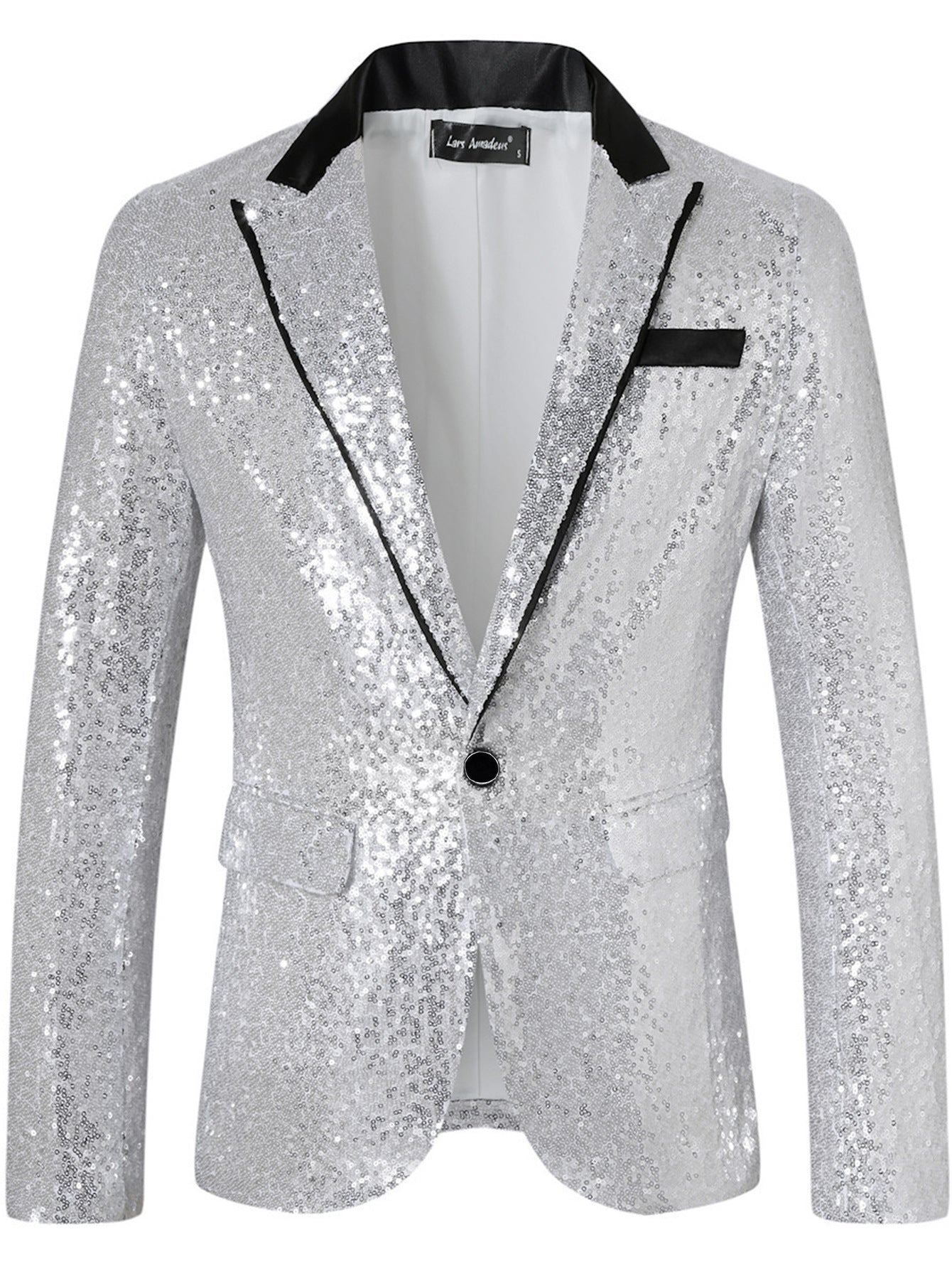 Entdecken Sie den Herren Glamourösen Paillettenblazer von Aliams, der Ihre elegante Erscheinung perfekt unterstreicht. Mit glitzernden Pailletten besetzt, ist dieser Blazer ideal für besondere Anlässe, Festlichkeiten oder Partys.