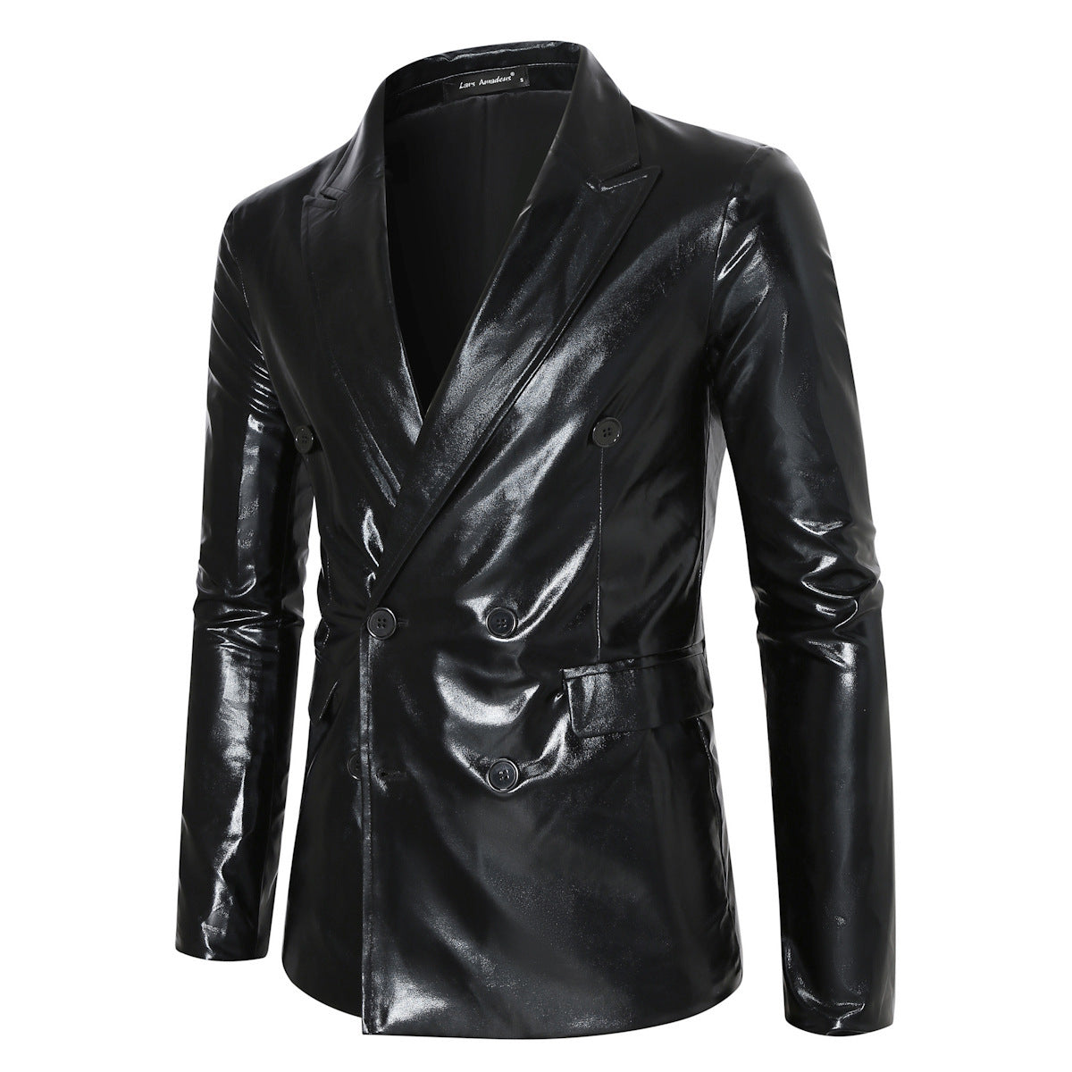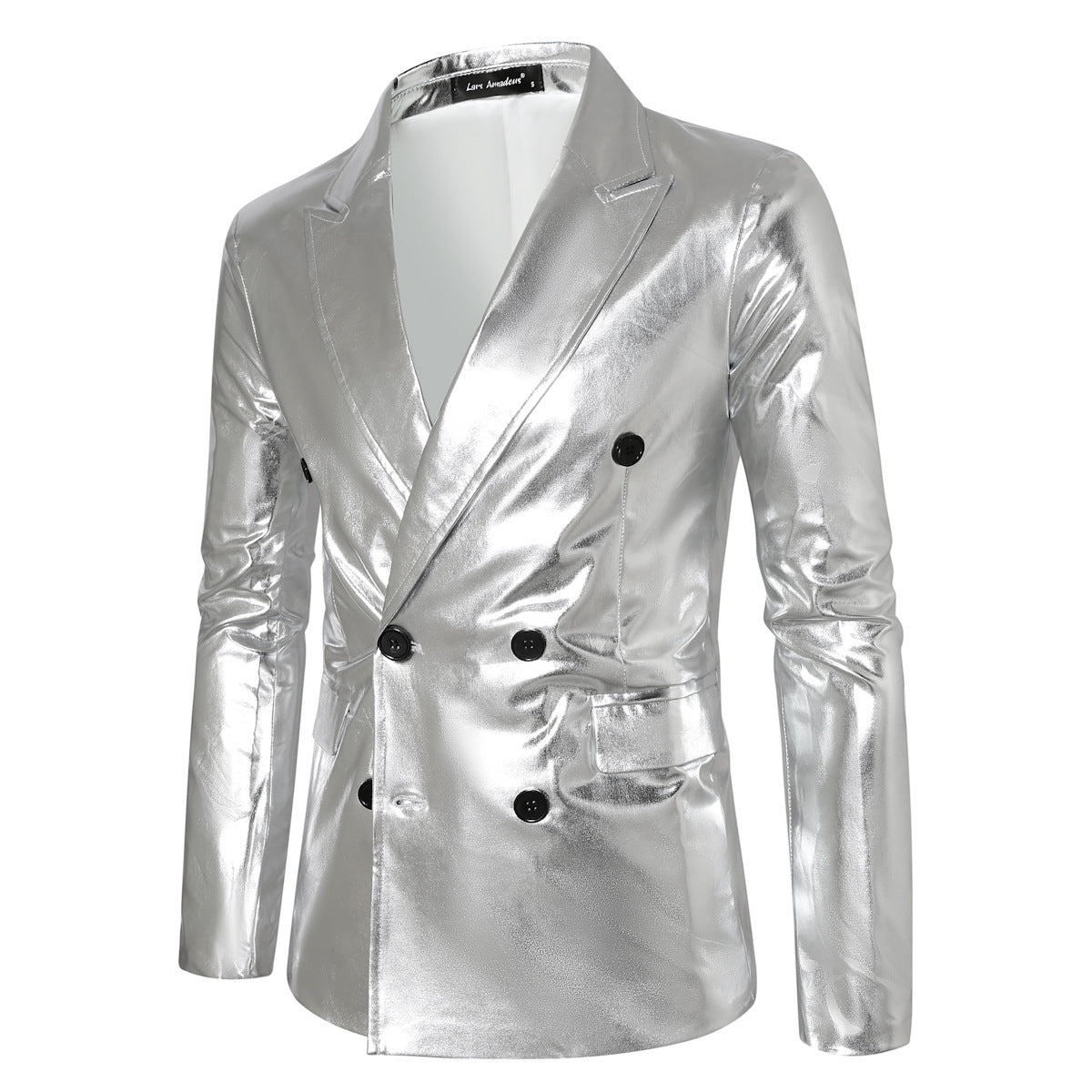 Herren glänzender Pailletten Blazer mit doppelter Knopfreihe Aliams