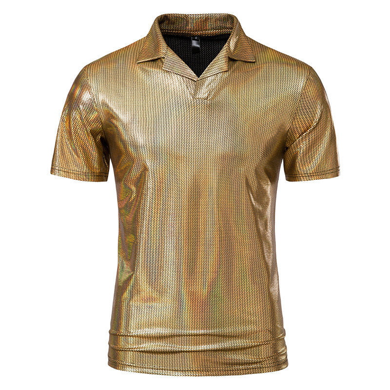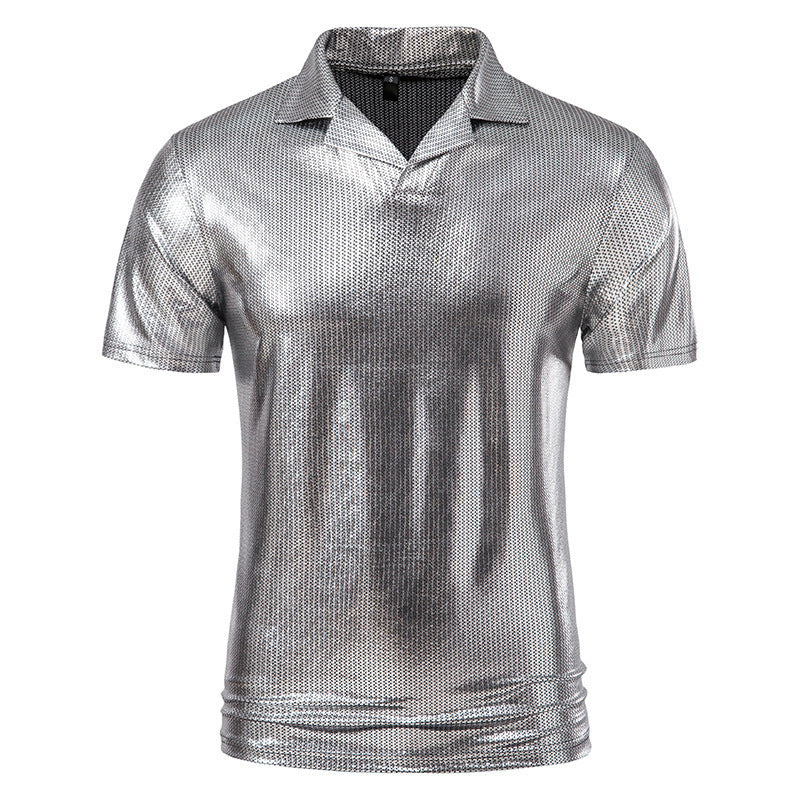 Herren glänzendes Kurzarmhemd mit modernem Design Aliams