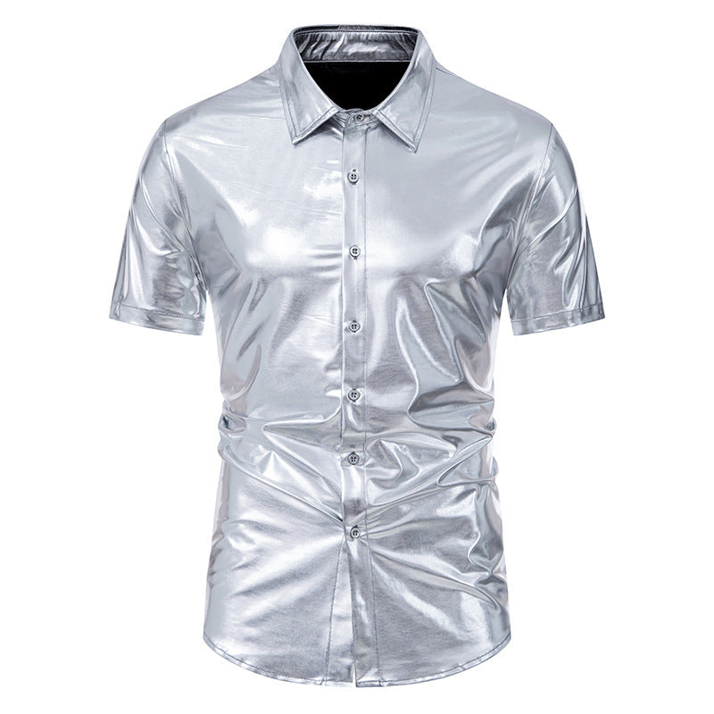 Entdecken Sie unser Herren glänzendes T-Shirt mit kurzem Arm, das perfekt für auffällige Auftritte und besondere Anlässe ist. Mit einem stylischen, reflektierenden Material, das nicht nur fantastisch aussieht, sondern auch ausgezeichneten Tragekomfort bietet. Dieses T-Shirt ist die ideale Wahl für Partys, Festivals oder Nachtleben.