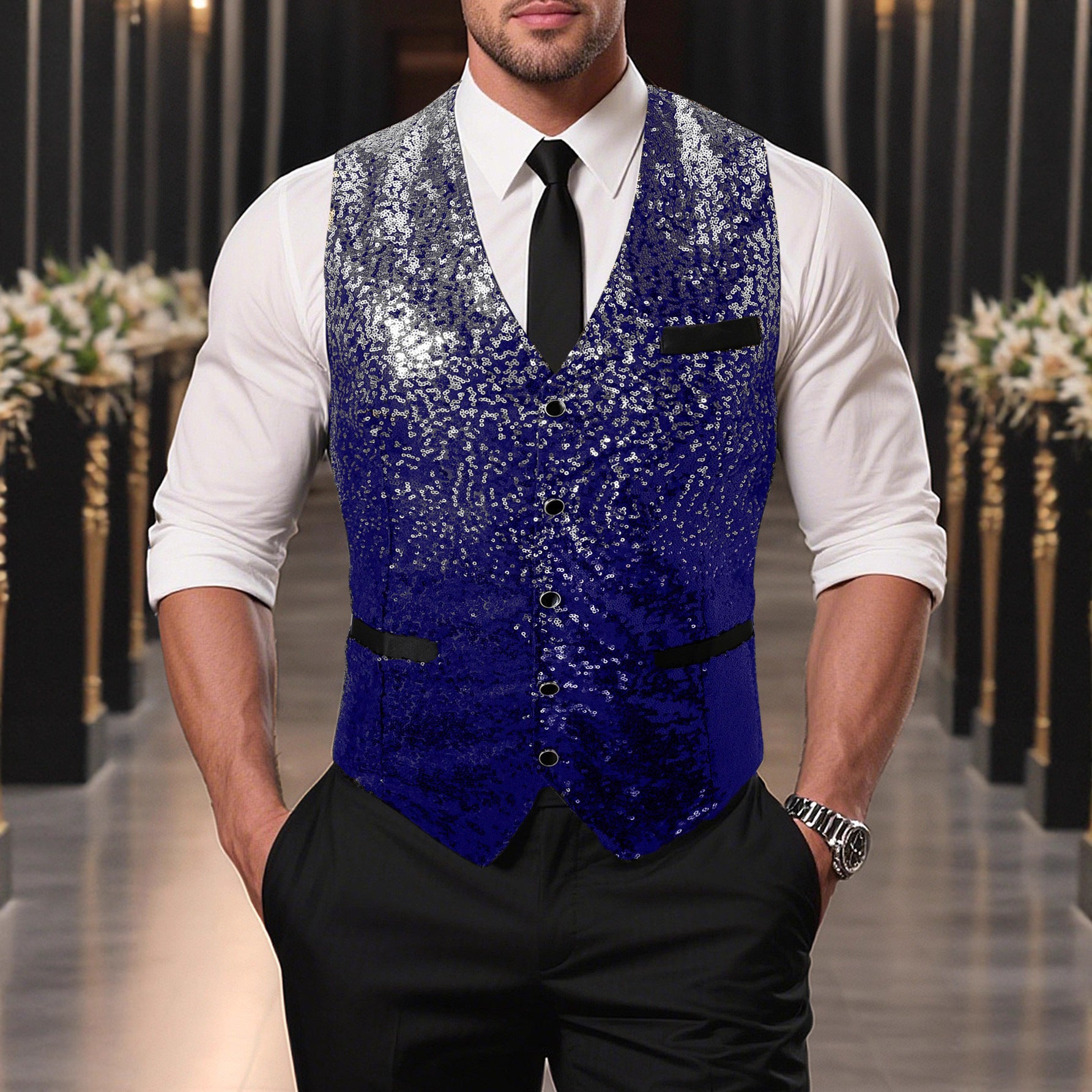 Vervollständigen Sie Ihren Look mit der Herren Glitzernden Weste von Aliams und stechen Sie aus der Menge heraus!