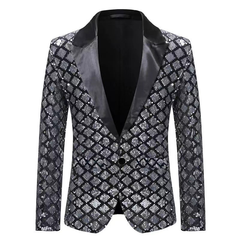 Entdecken Sie das Herren Glitzerndes Smoking-Sakko im modernen Design von Aliams, das ideal für festliche Anlässe und besondere Gelegenheiten ist. Dieses stilvolle Sakko überzeugt durch seine auffällige Pailletten-Optik, die jedem Outfit einen Hauch von Glamour verleiht.