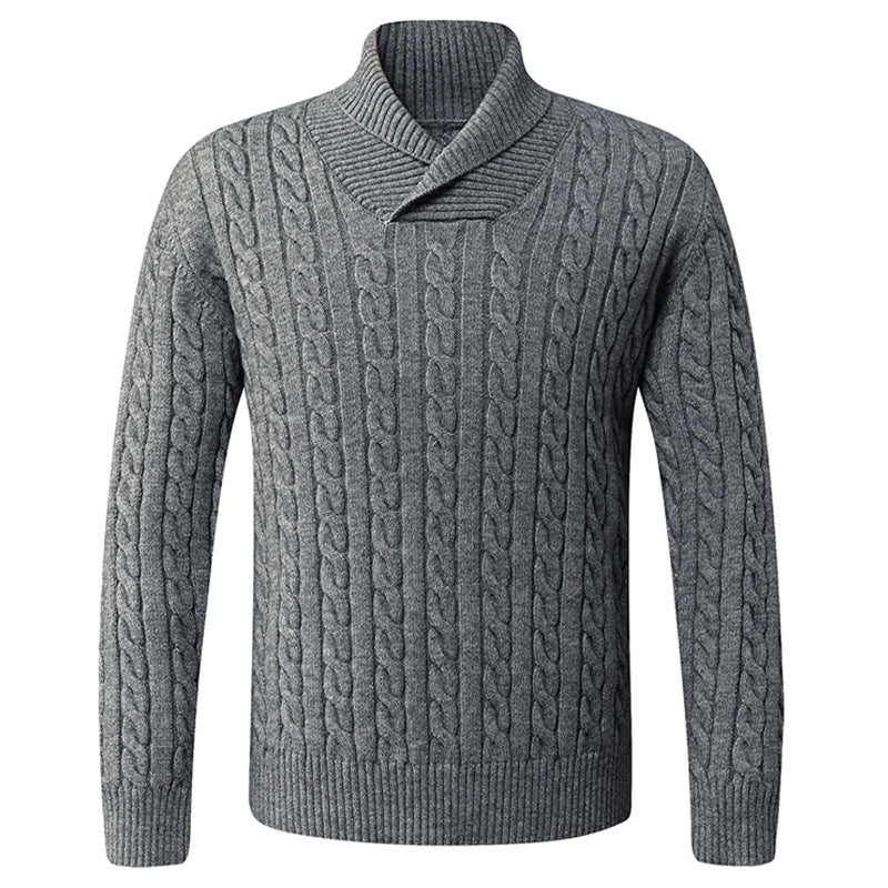 Herren Grobstrickpullover mit modernem Schalkragen und Zopfmuster Aliams
