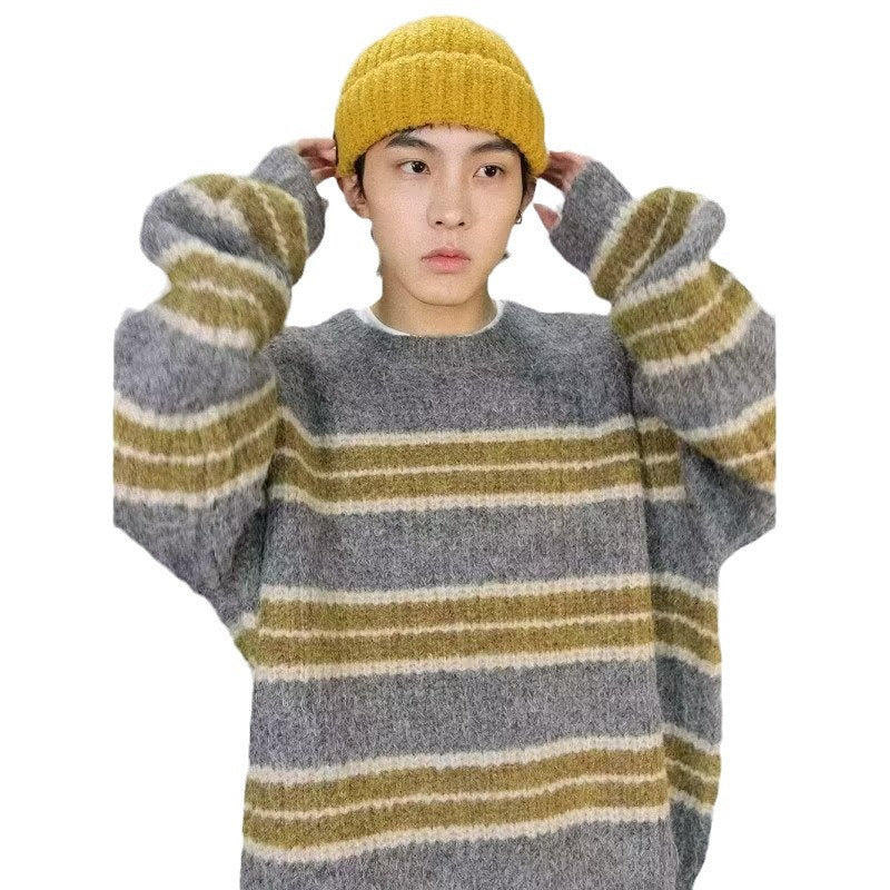 Herren Grobstrickpullover mit modernem Streifenmuster Aliams