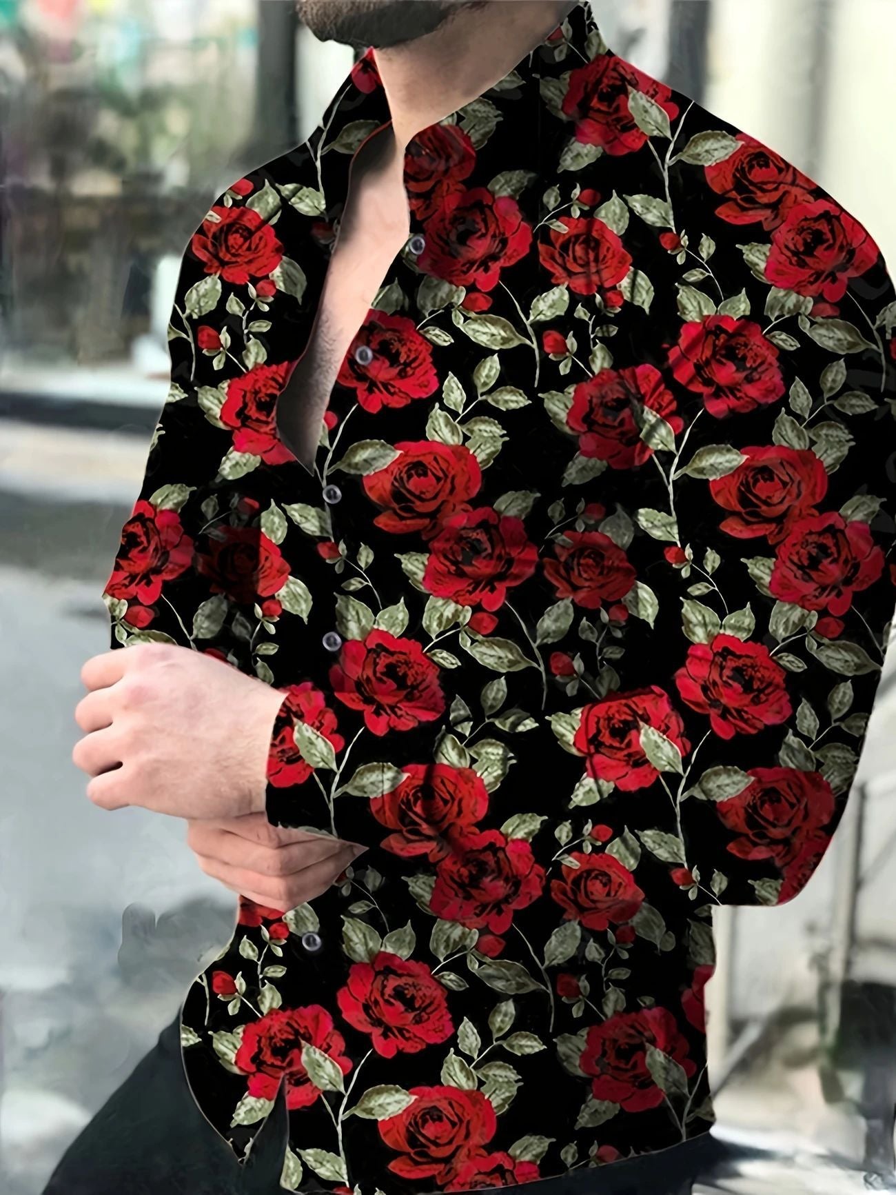 Herren Hemd mit floralen Rosenmotiven Aliams