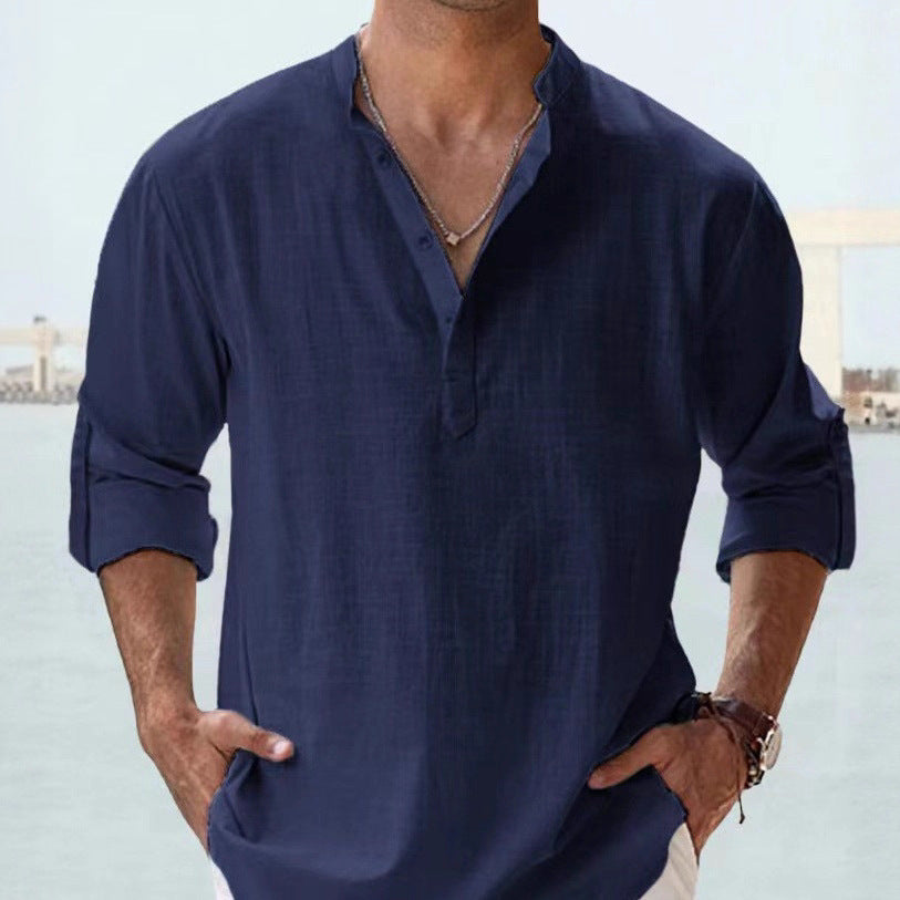 • Design: Das zeitlose, schlichte Design mit Rollärmeln und lässigem Kragen verleiht dem Hemd eine moderne Note und bietet Vielseitigkeit für zahlreiche Anlässe.