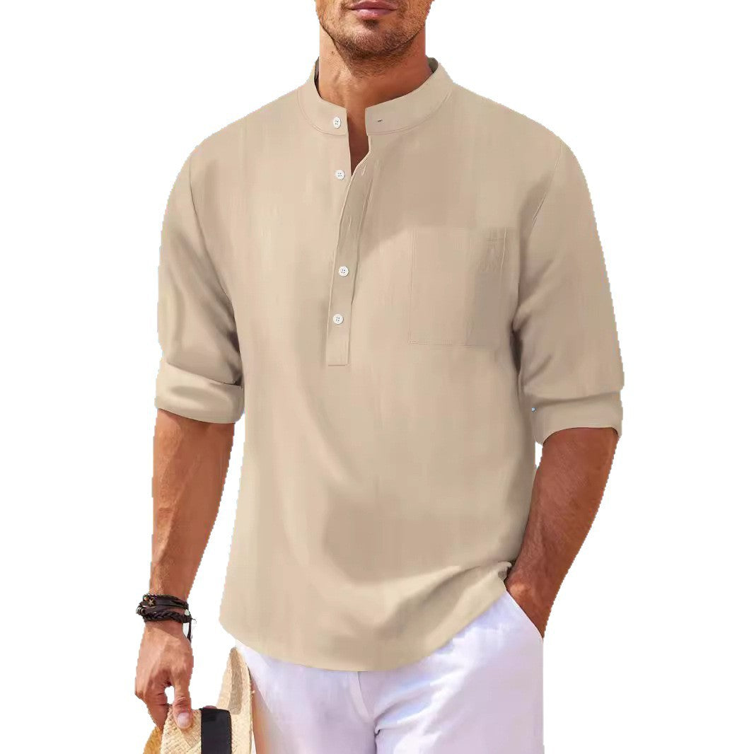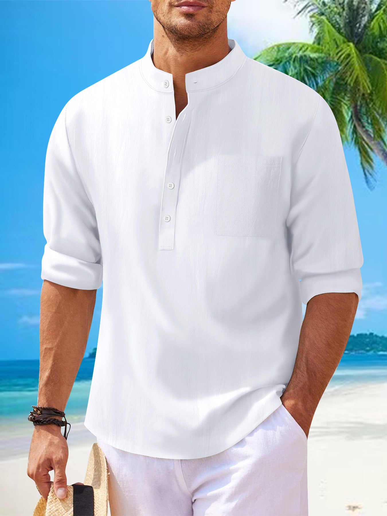 Entdecken Sie unser Herren Hemd mit modernem Stehkragen und praktischer Brusttasche, das perfekte Kleidungsstück für stilbewusste Männer. Dieses Hemd vereint Eleganz mit Komfort und eignet sich hervorragend für entspannte Tage am Strand oder lässige Abendessen.