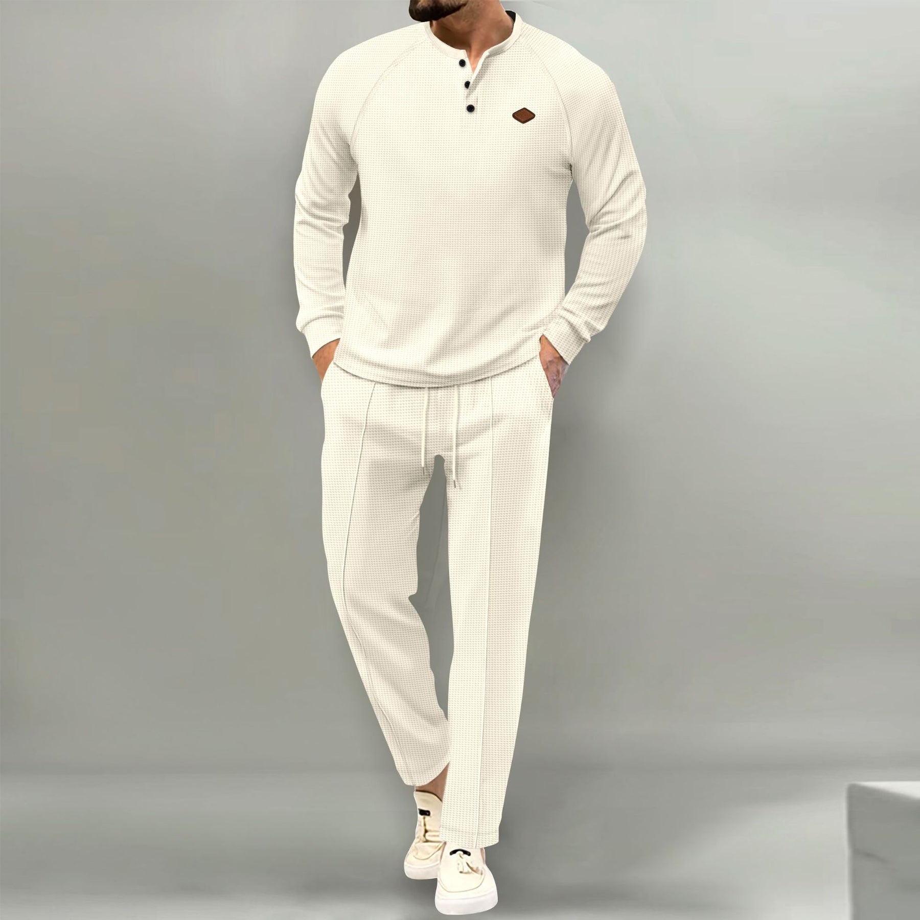 Entdecken Sie den perfekten Mix aus Stil und Komfort mit unserem Herren hochwertigen Freizeitanzug. Dieses Set umfasst ein elegantes Langarmshirt mit modischer Knopfleiste und eine bequeme Hose, die ideal für entspannte Tage zuhause oder lässige Ausflüge ist.