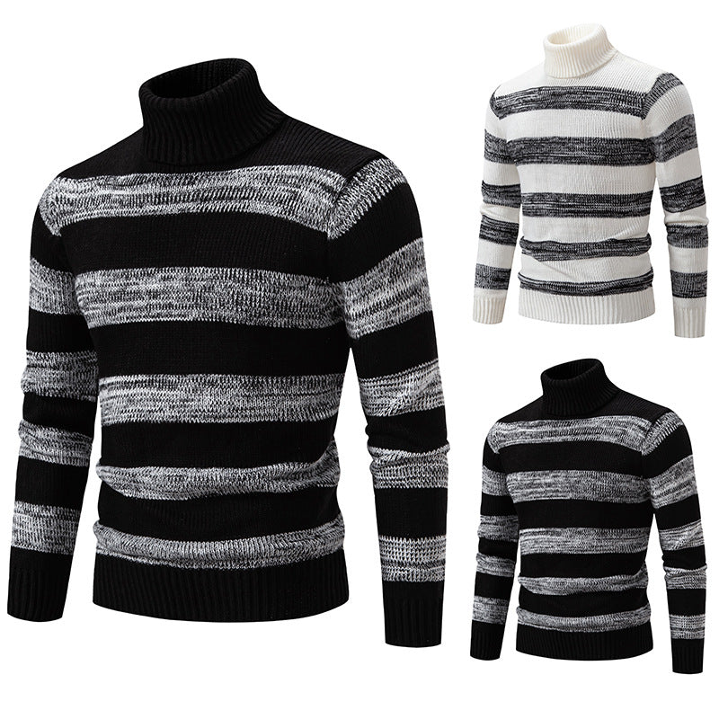 Entdecken Sie unseren Herren hochwertigen Rollkragenpullover mit auffälligem Streifenmuster von Aliams. Dieser Pullover kombiniert stilvolles Design mit ultimativer Bequemlichkeit und ist der ideale Begleiter für die kühlen Monate.