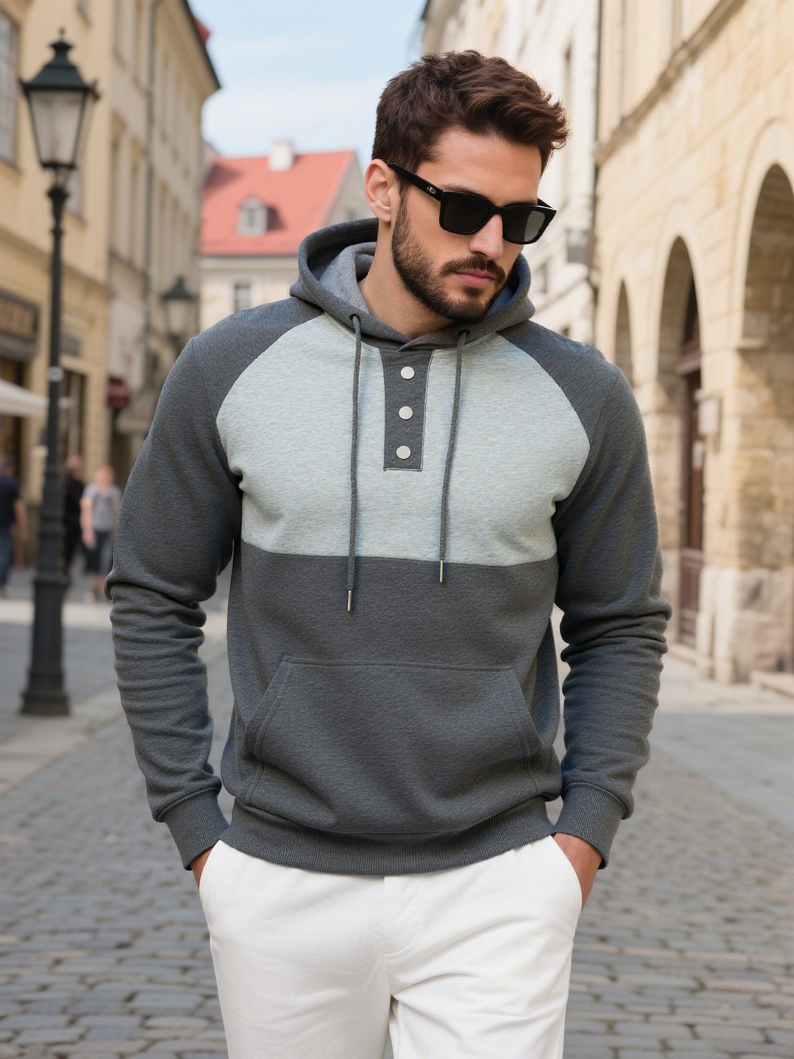 Entdecken Sie den perfekten Mix aus Stil und Komfort mit unserem Herren Hoodie von Aliams. Dieses modische Kleidungsstück zeichnet sich durch ein ansprechendes Kontrastdesign aus, das jedem Outfit einen einzigartigen Look verleiht. Hergestellt aus hochwertigem, weichem Material bietet dieser Hoodie optimalen Tragekomfort, egal ob beim Entspannen zu Hause oder beim Treffen mit Freunden.