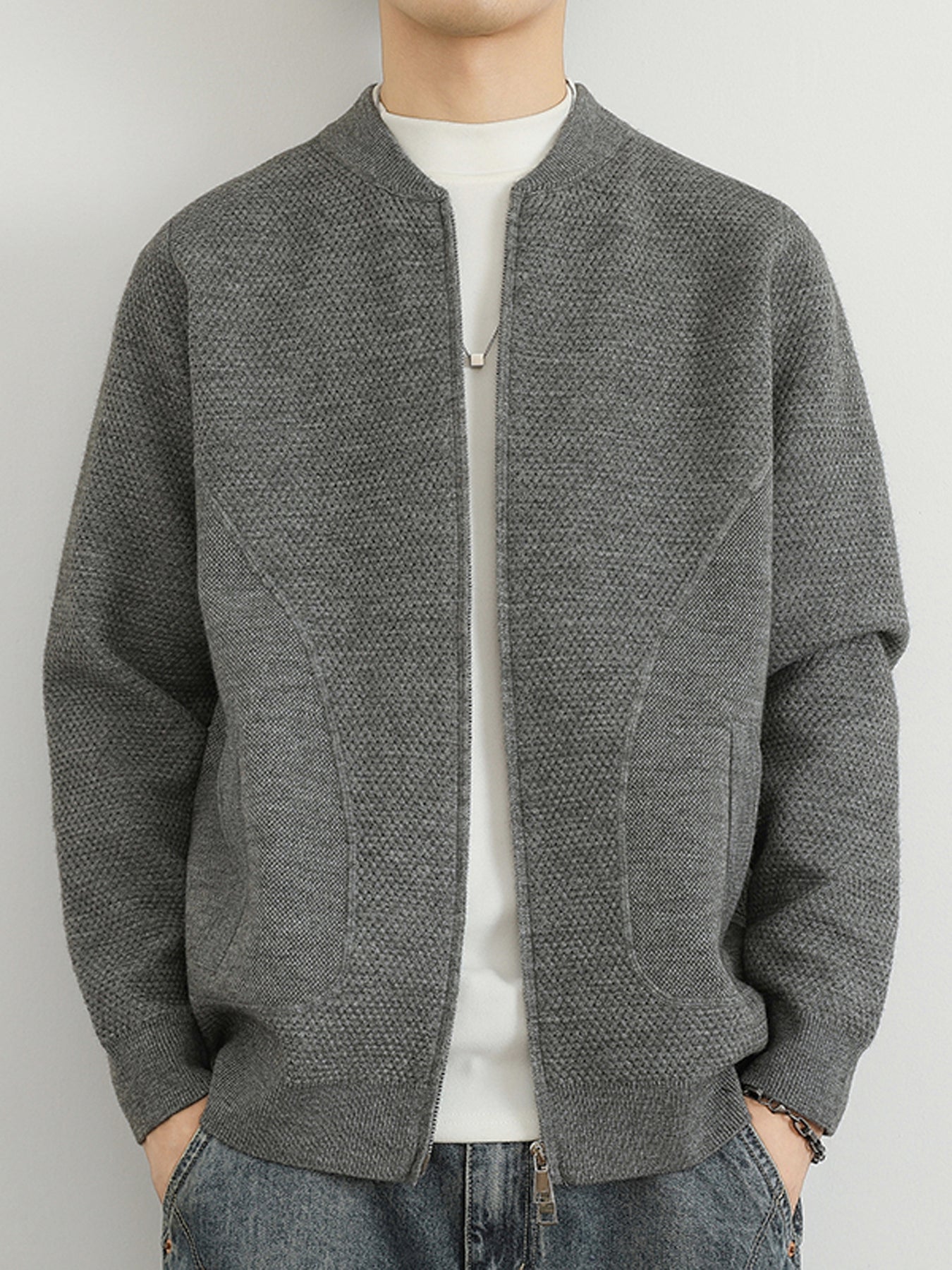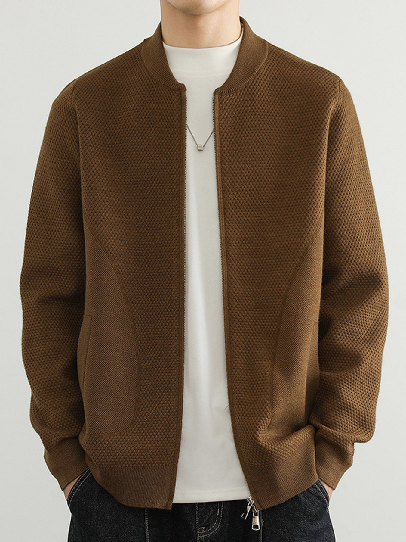 Herren Jacquard Sweatjacke mit Reißverschluss und praktischen Taschen Aliams