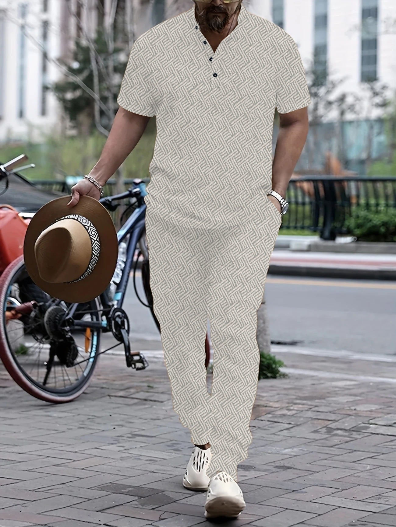 Herren Jumpsuit mit modischem Webmuster und praktischen Taschen Aliams