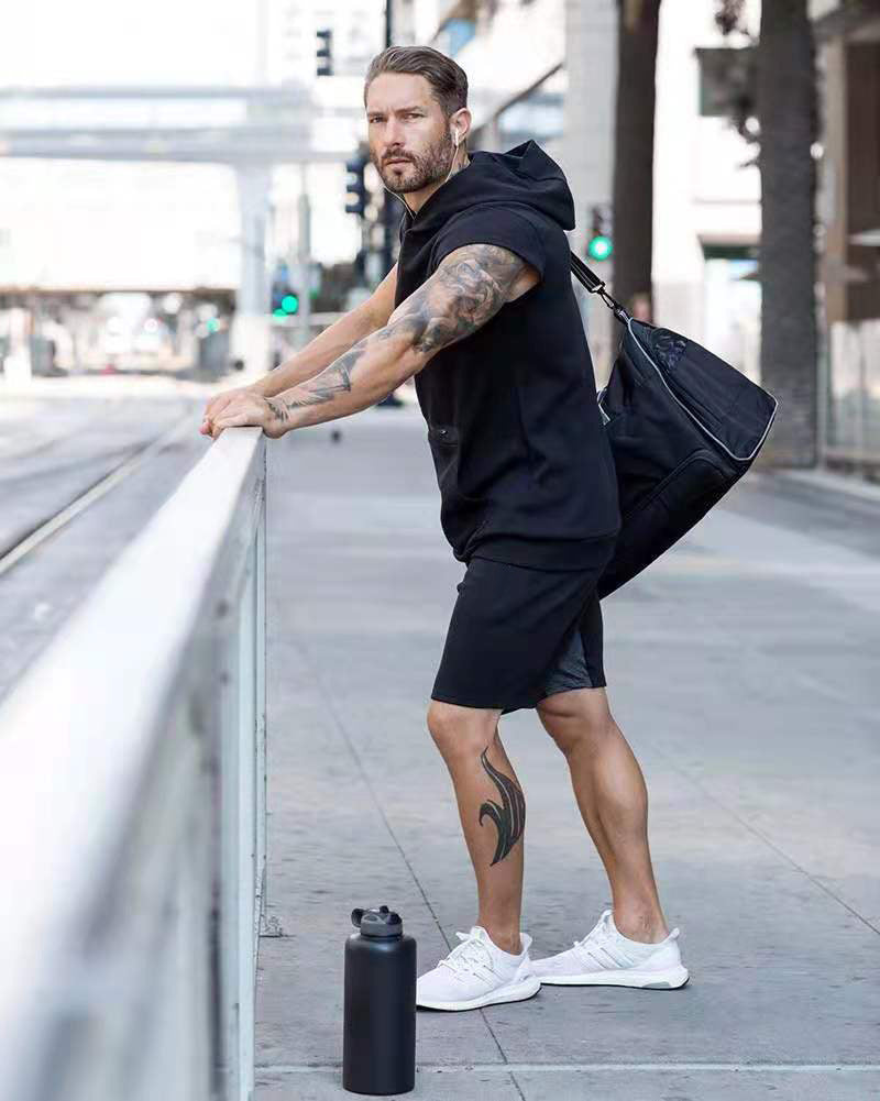 Herren Kapuzen-T-Shirt mit Ärmelloses Design und praktischer Fronttasche Aliams