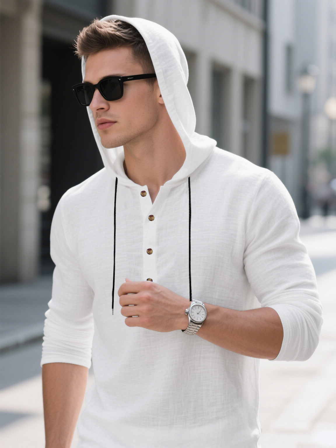 • Modisches Design: Das Kapuzenhemd verfügt über eine stilvolle Knopfleiste und lässt sich perfekt mit Ihrer Freizeitkleidung kombinieren.