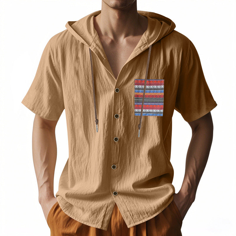 Herren Kapuzenhemd mit buntem Muster und kurzen Ärmeln Aliams