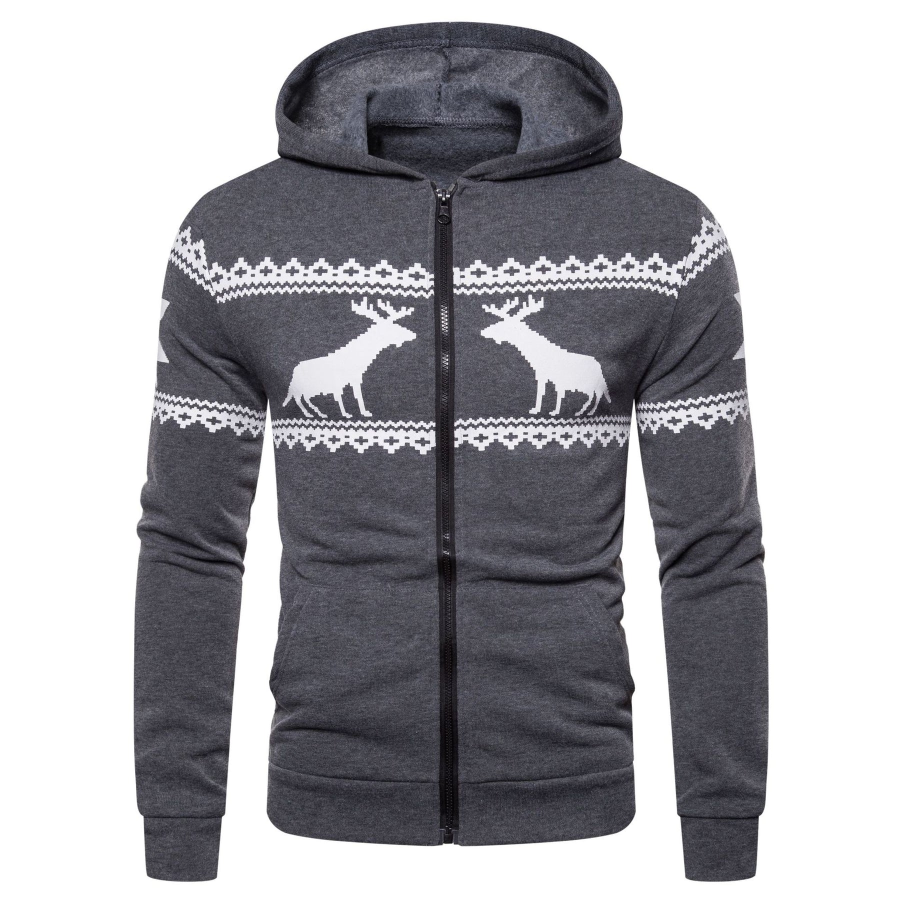 Herren Kapuzenjacke mit nordischem Motiv und praktischem Reißverschluss Aliams