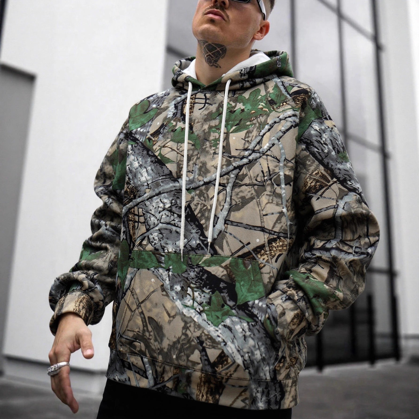 Entdecken Sie den unverwechselbaren Herren Kapuzenpullover mit innovativem Camouflage-Druck von Aliams. Dieser stylishen und bequemen Pullover ist perfekt für Freizeitaktivitäten oder entspannte Tage in der Stadt.