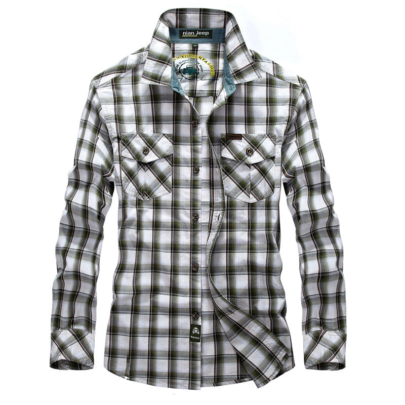 Herren karierte Hemd mit zwei Brusttaschen Aliams