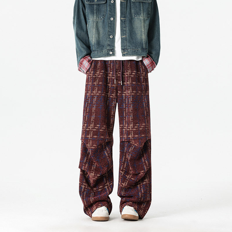 Herren Karierte Relaxed-Fit Hose mit verstellbarem Bund Aliams