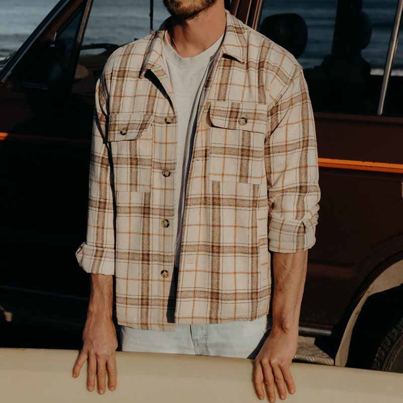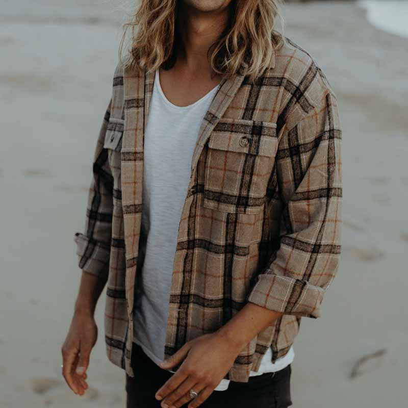 Herren Karierter Flanellhemd mit praktischen Brusttaschen und Knopfverschluss Aliams