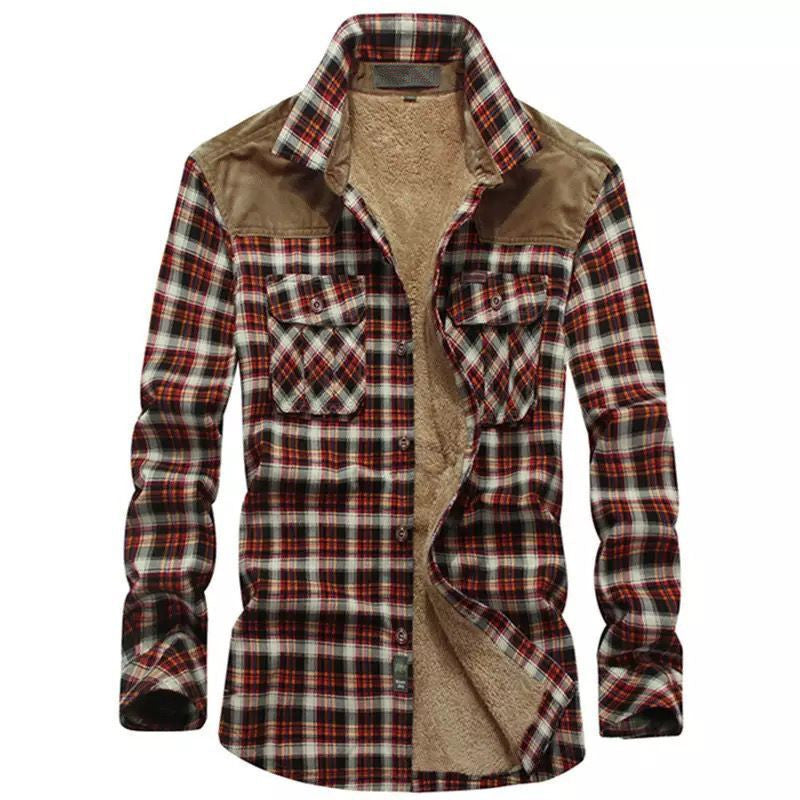 Herren karierter Flanellhemd mit warmem Innenfutter Aliams