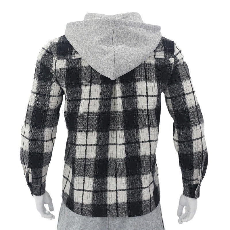 Herren kariertes Flanellhemd mit Kapuze und praktischen Taschen Aliams