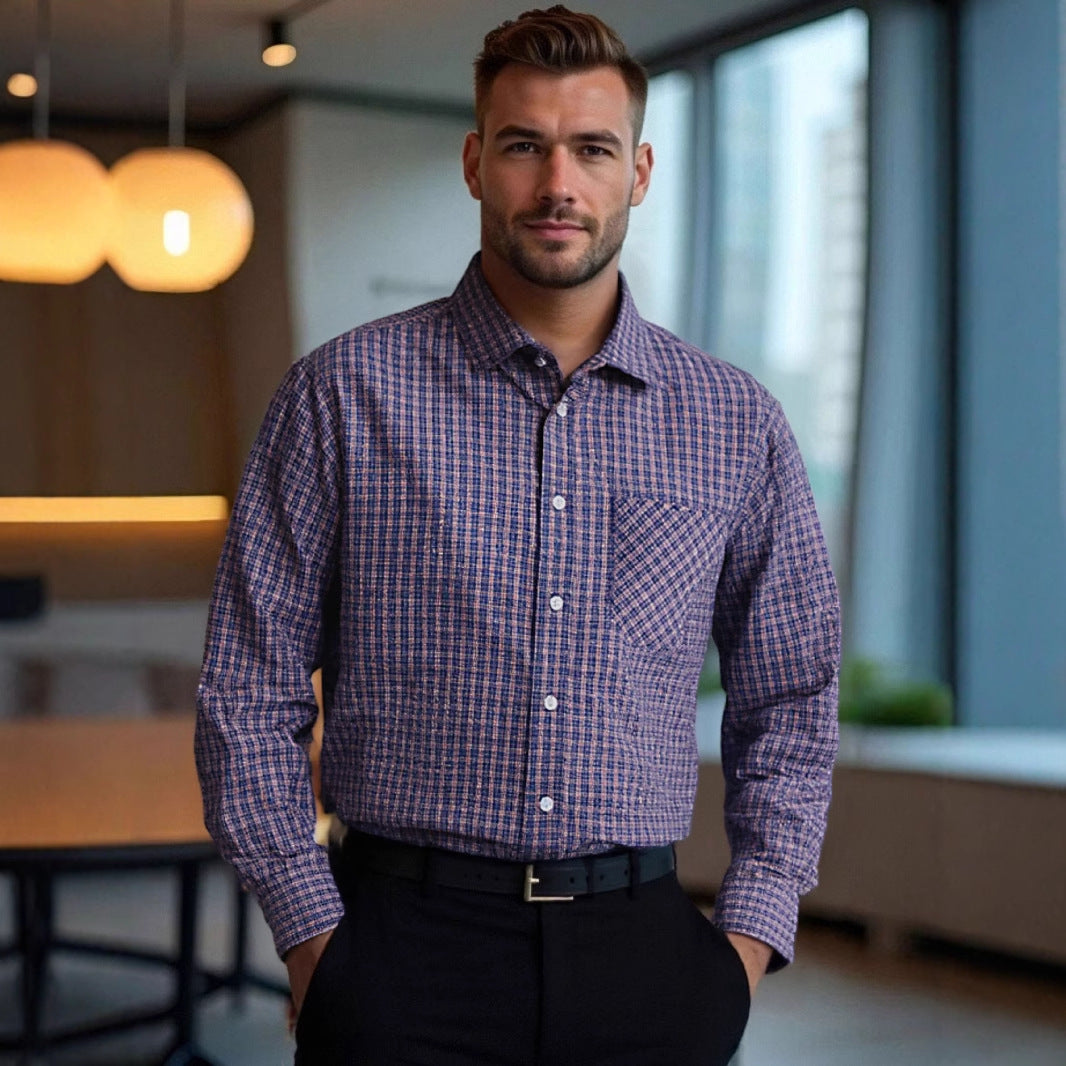 Herren kariertes Langarm-Hemd mit hochwertiger Baumwollmischung und praktischer Brusttasche Aliams