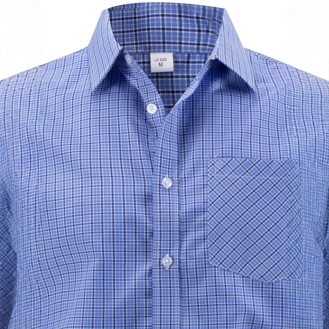 Herren klassisches, kariertes Langarmhemd mit Brusttasche Aliams