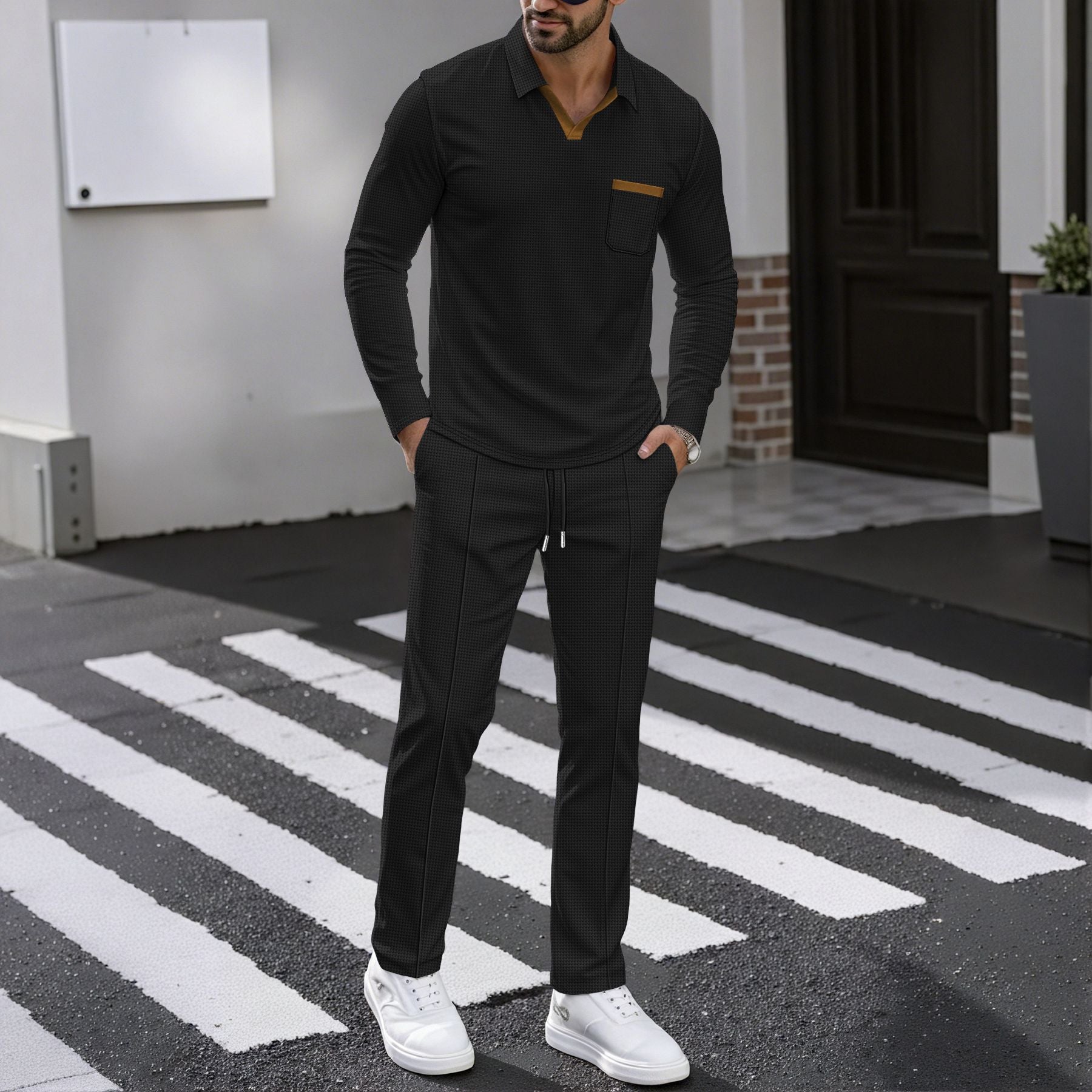 Entdecken Sie das stilvolle Herren Kombi-Outfit, das aus einem eleganten Poloshirt und einer bequemen Jogginghose besteht. Dieses Set ist perfekt für Freizeitaktivitäten und bietet sowohl Komfort als auch modischen Schwung.