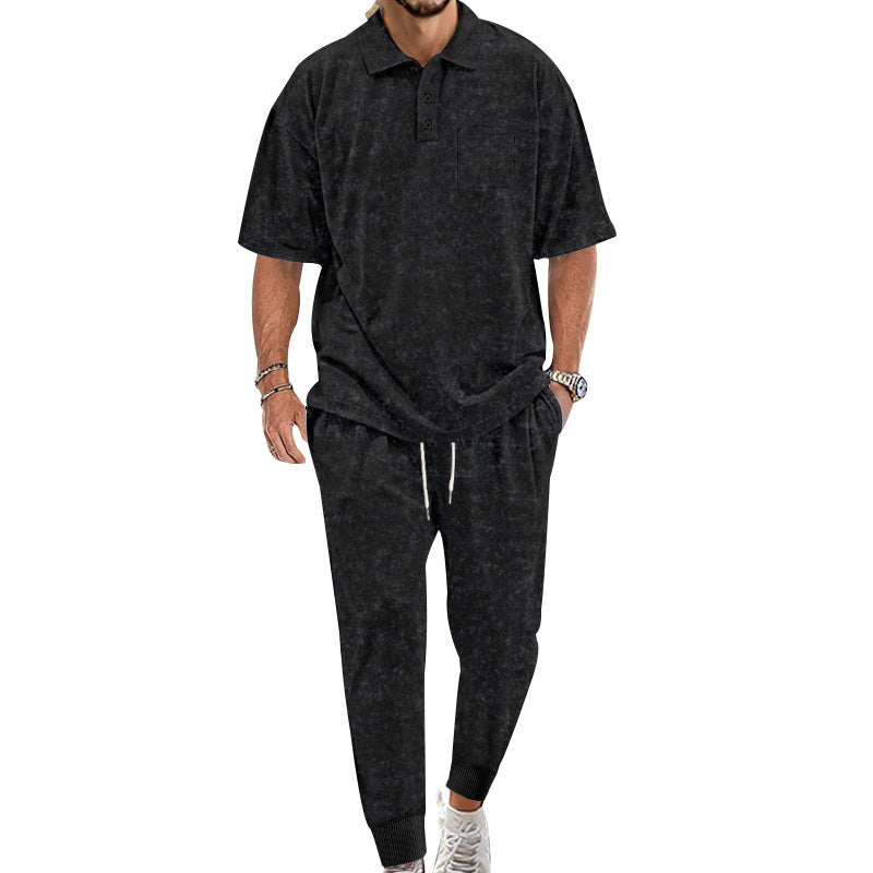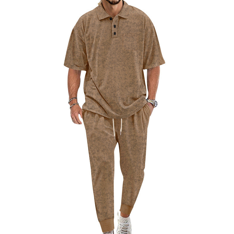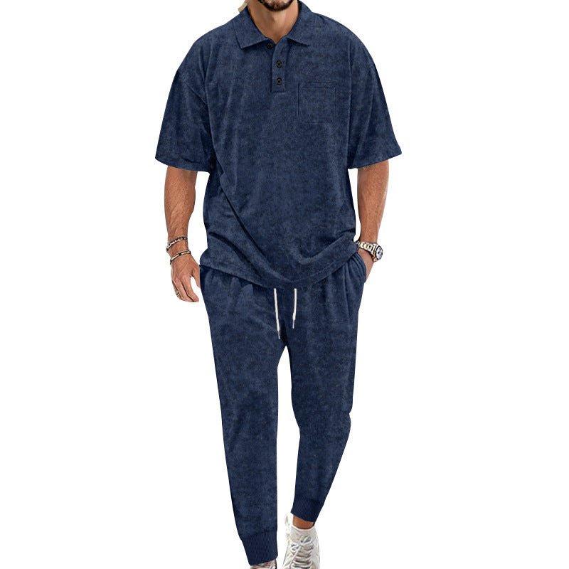 Entdecken Sie unser Herren komfortables Freizeit-Set, das Eleganz und Bequemlichkeit vereint. Das Set besteht aus einem hochwertigen Kurzarm-Polohemd und passenden bequemen Jogginghosen, die ideal für entspannte Tage oder sportliche Aktivitäten sind.