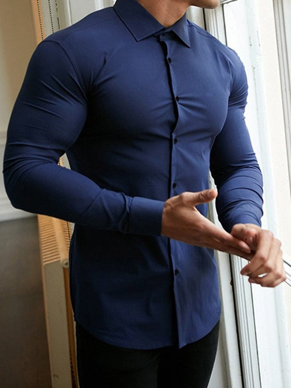 Entdecken Sie das Herren körperbetonte Langarmhemd mit modischem Kragen und eleganten Knöpfen von Aliams, das ideale Kleidungsstück für stilbewusste Männer. Dieses Hemd vereint Komfort und Eleganz, wodurch es perfekt für verschiedene Anlässe geeignet ist – ob im Büro oder in der Freizeit.