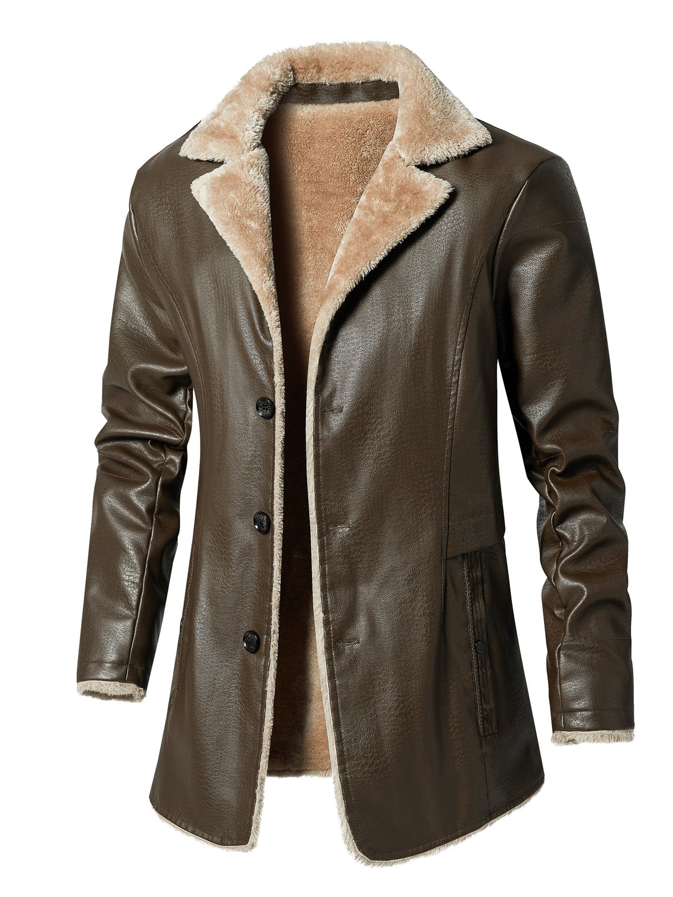 Herren Kunstleder Jacke mit luxuriösem Fleecefutter Aliams