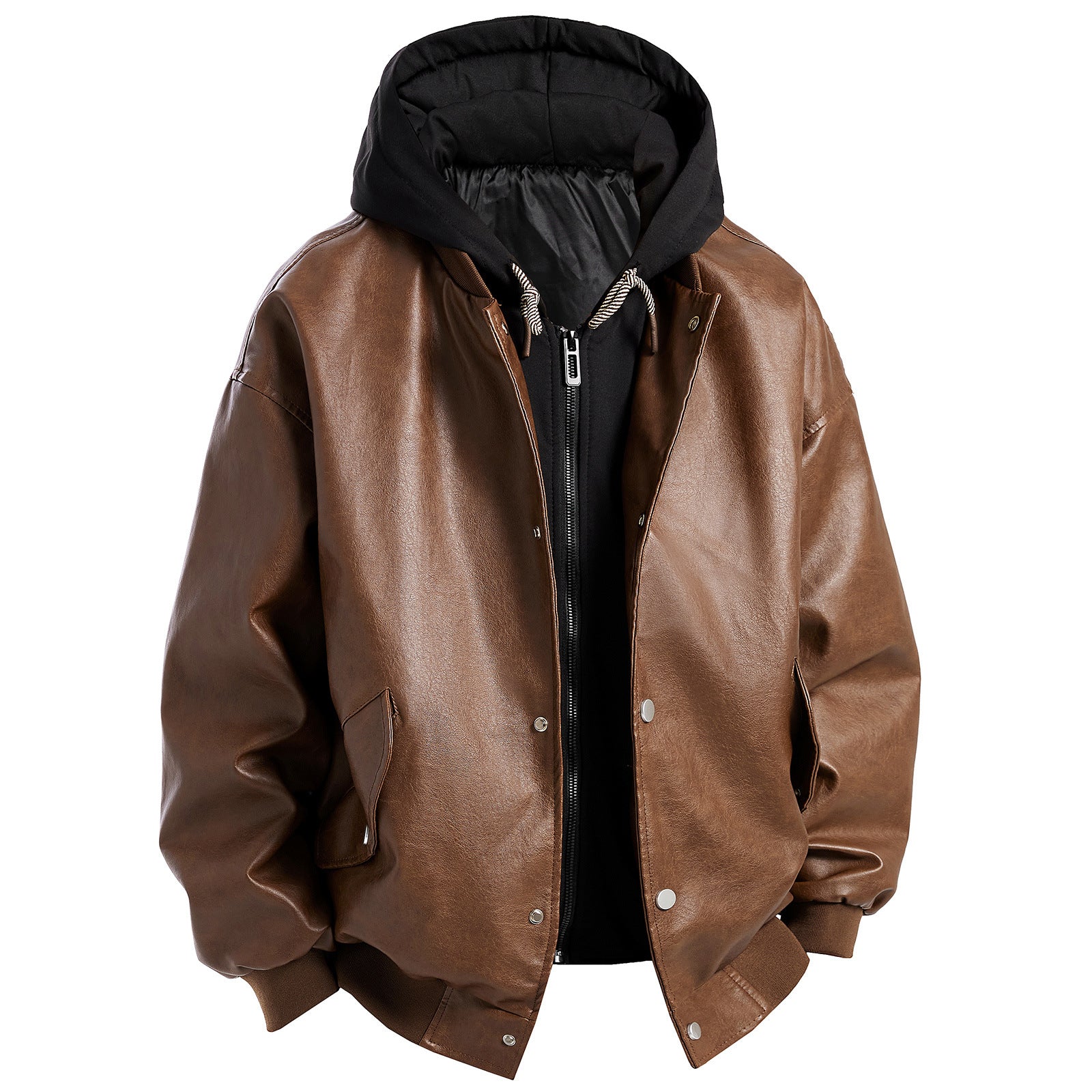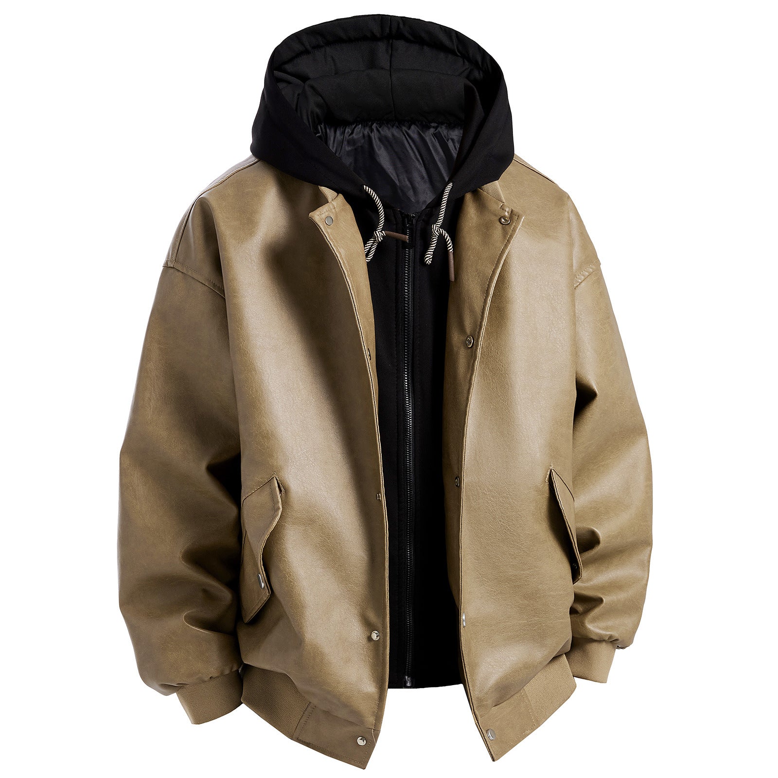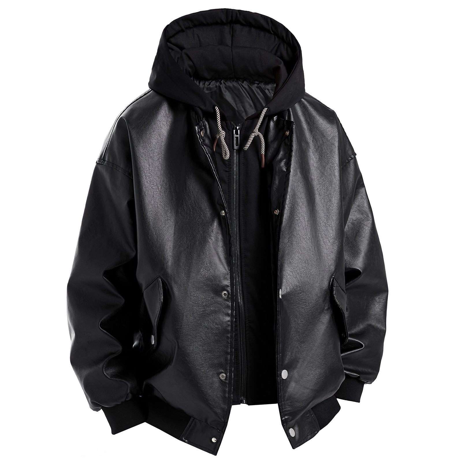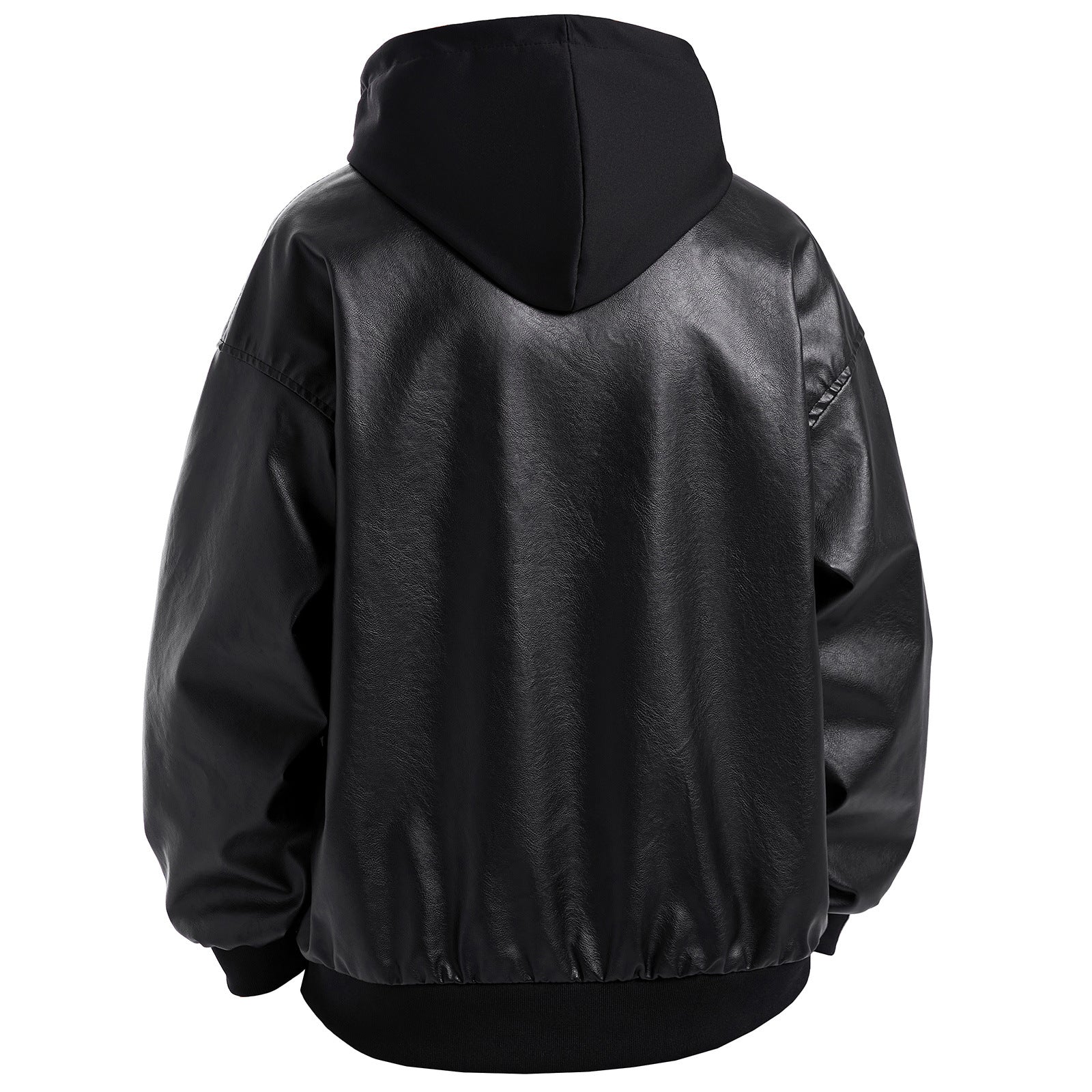 Herren Kunstlederjacke im oversized Schnitt mit abnehmbarer Kapuze Aliams