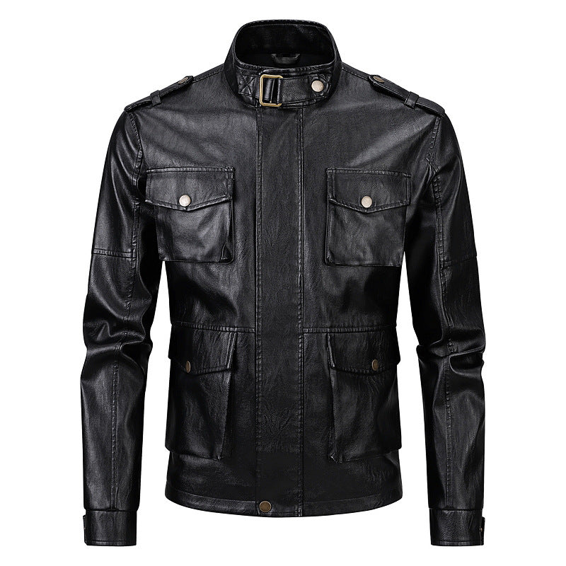 Herren Kunstlederjacke im stilvollen Militärlook mit funktionalen Pattentaschen Aliams