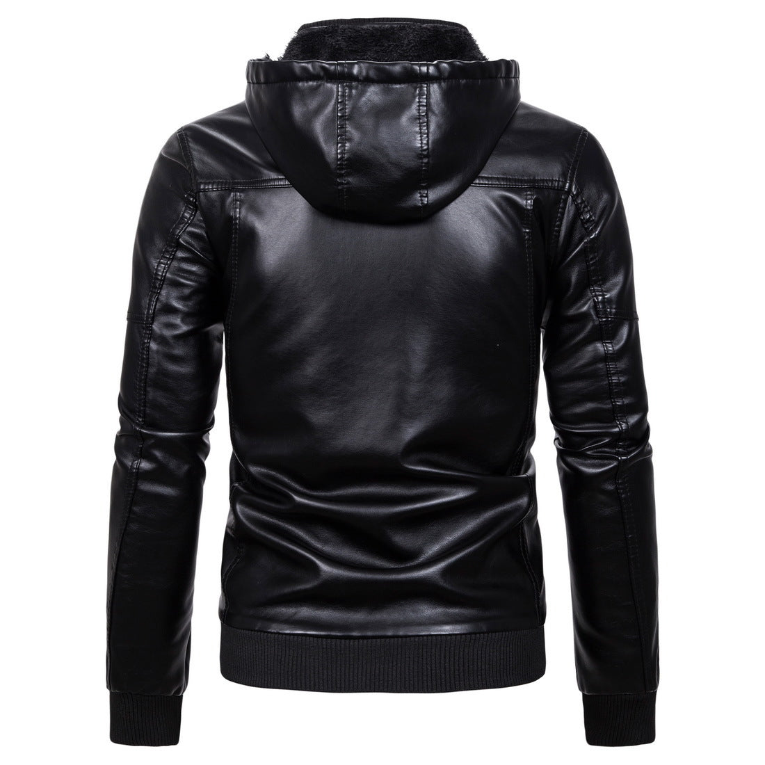 Herren Kunstlederjacke mit Kapuze und Fleece-Futter Aliams