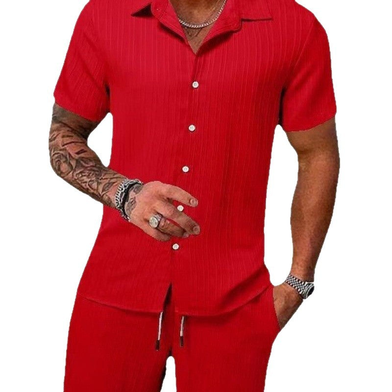 Herren Kurzarm Freizeitanzug mit strukturiertem Design und elastischem Bund Aliams
