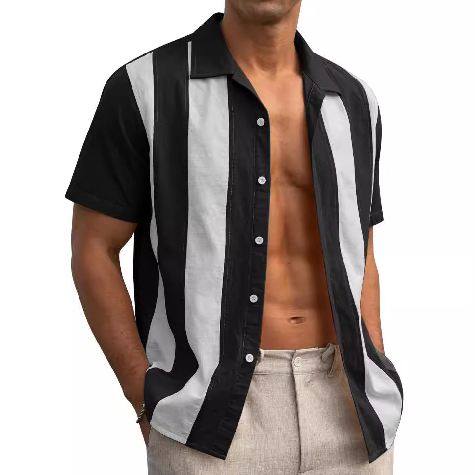 Herren Kurzarm Hemd mit aufwendigem Streifenmuster Aliams