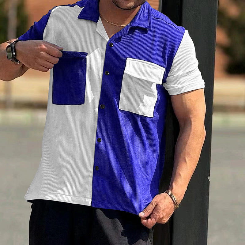 Herren Kurzarm-Hemd mit Farbblockdesign und praktischen Brusttaschen Aliams