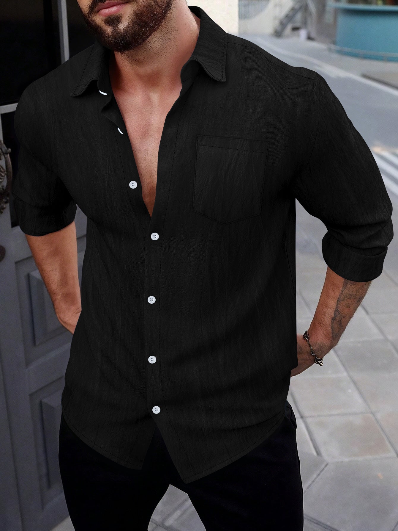Herren Kurzarm-Hemd mit feiner Textur und Brusttasche Aliams
