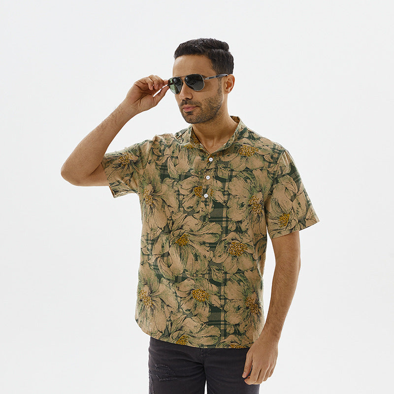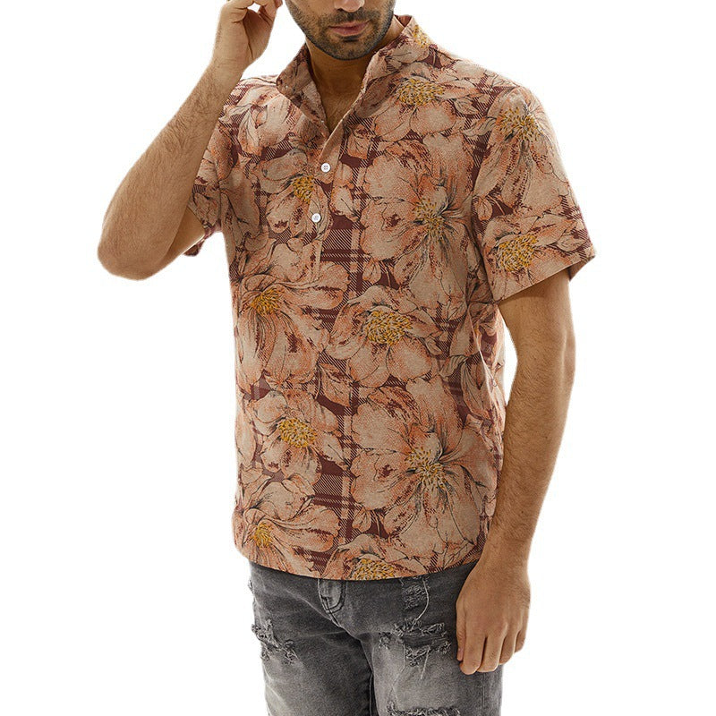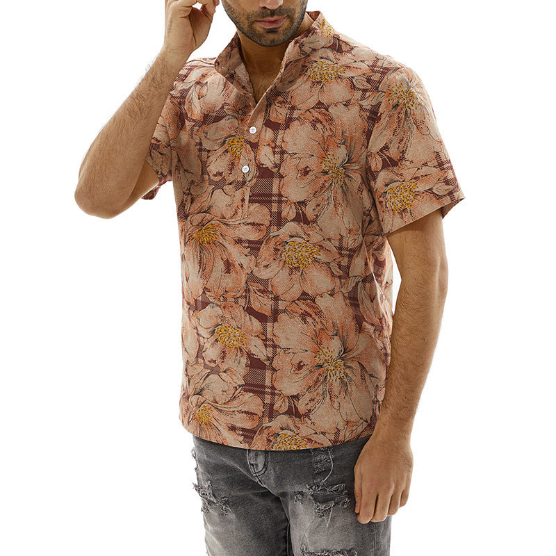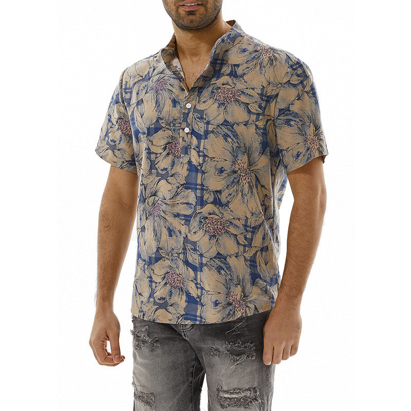 Herren Kurzarm-Hemd mit floralem Muster und modischem Stehkragen Aliams