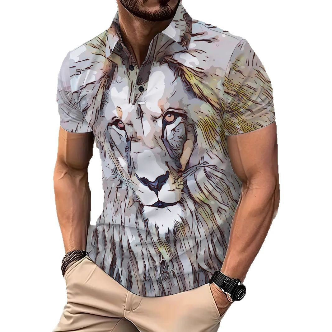 Herren Kurzarm Hemd mit künstlerischem Tierdruck Aliams
