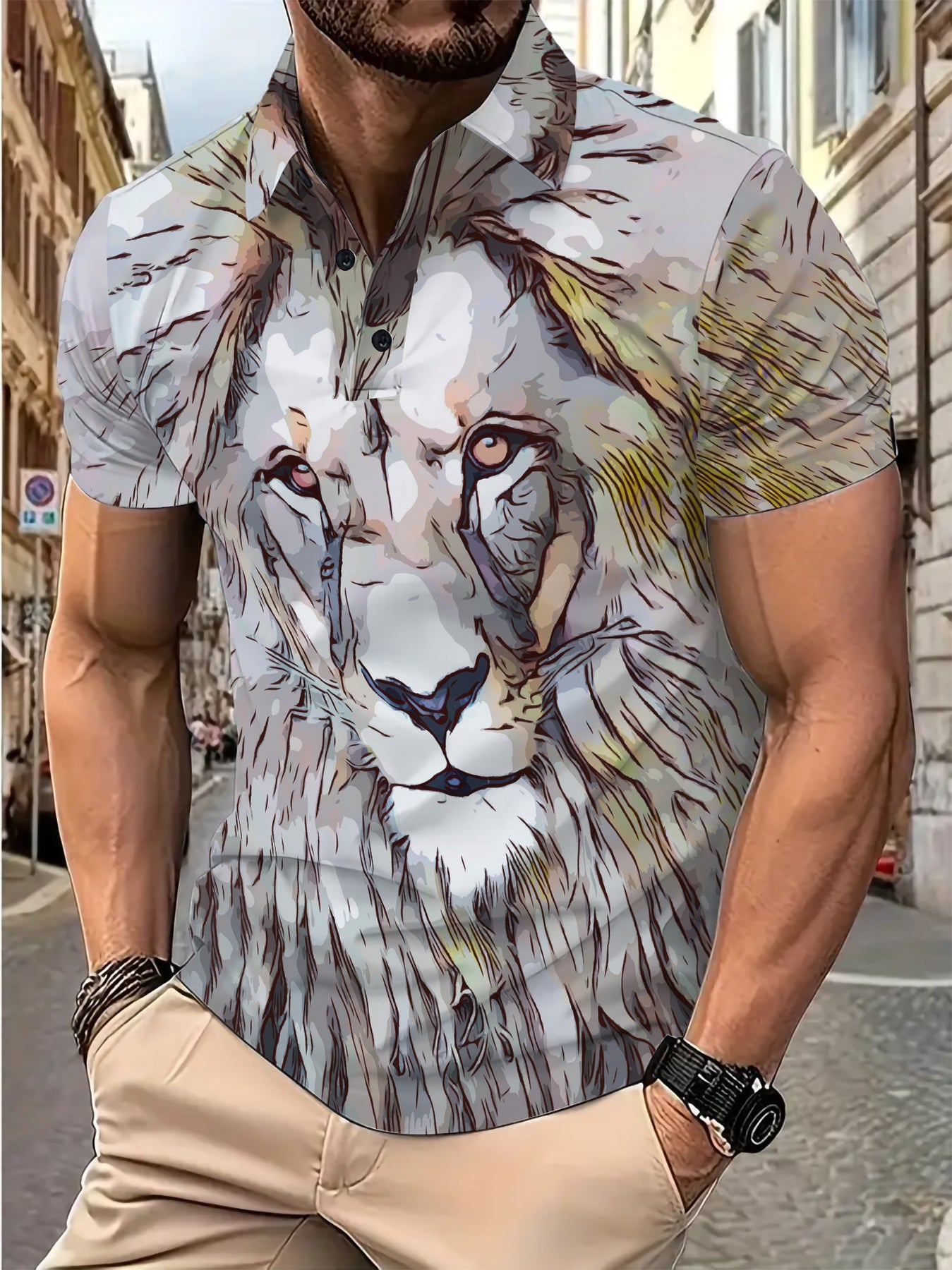 • Kreatives Design: Der eindrucksvolle Druck eines majestätischen Löwen sorgt für einen auffälligen Look.