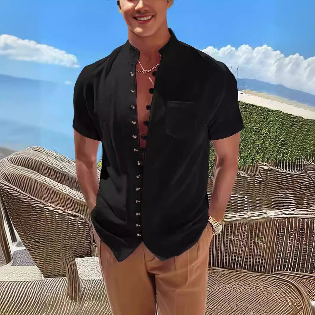 Herren Kurzarm Hemd mit modernem Knopfdesign Aliams