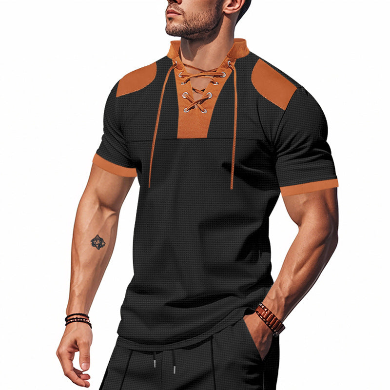 Herren Kurzarm-Hemd mit modernem Schnürdesign und komfortabler Passform Aliams