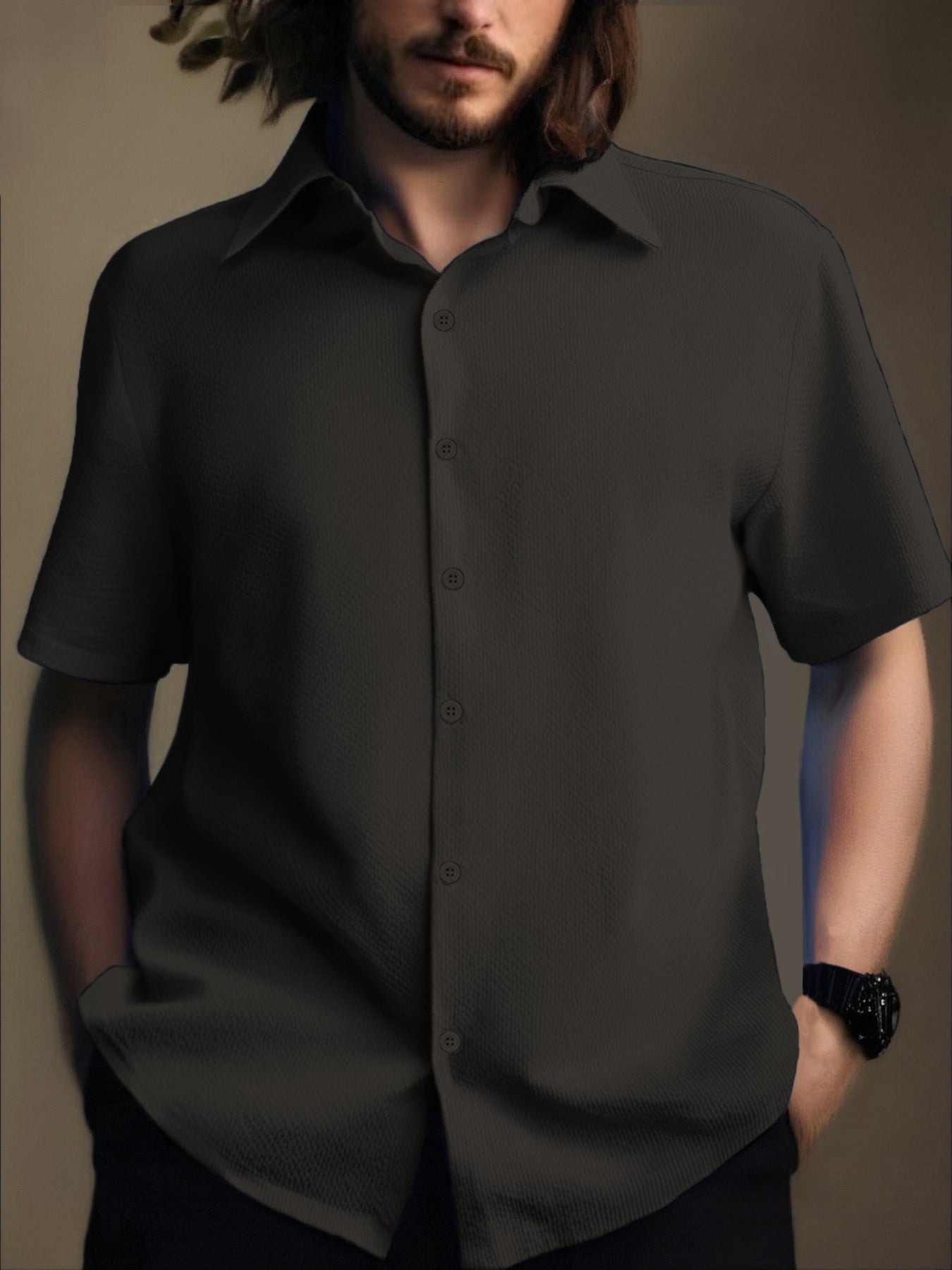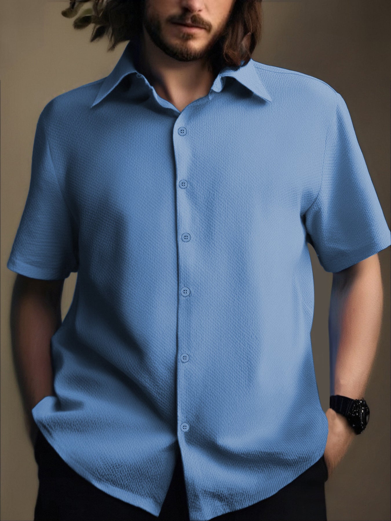 Herren Kurzarm-Hemd mit strukturiertem Gewebe und modernen Details Aliams