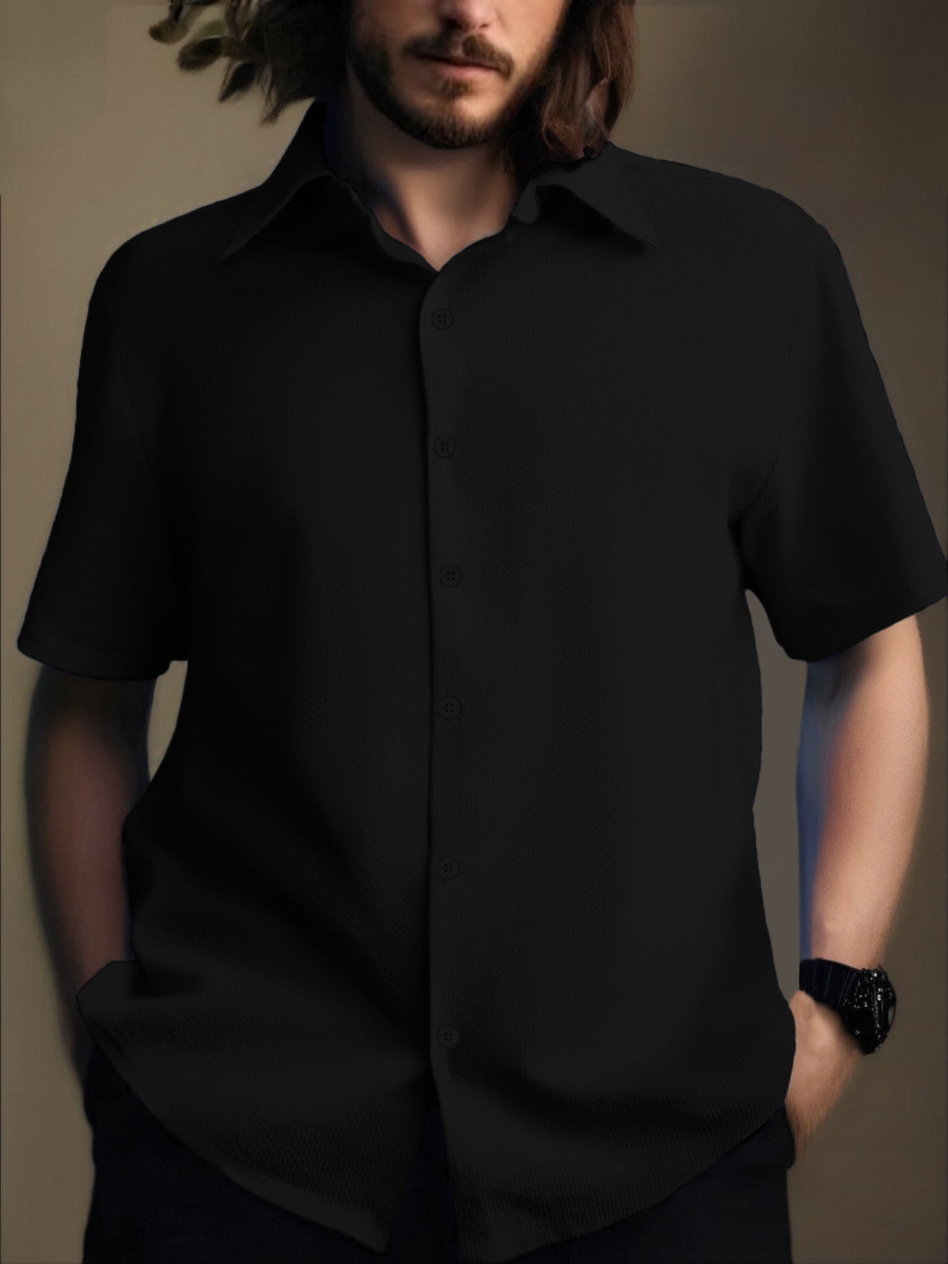 Entdecken Sie unser stilvolles Herren Kurzarm-Hemd, das durch sein einzigartiges strukturiertes Gewebe besticht. Dieses Hemd verbindet moderne Elemente mit klassischem Design und eignet sich perfekt für vielfältige Anlässe.