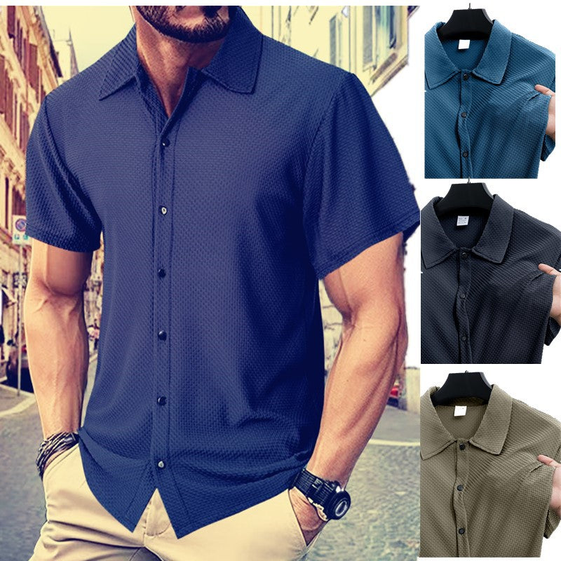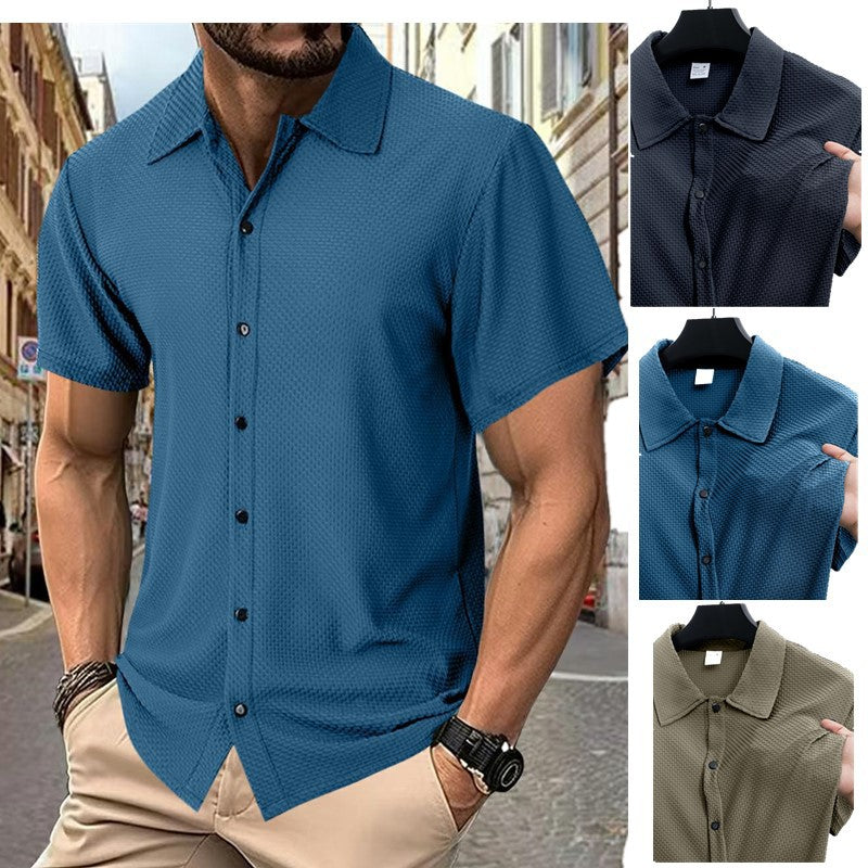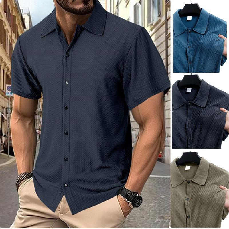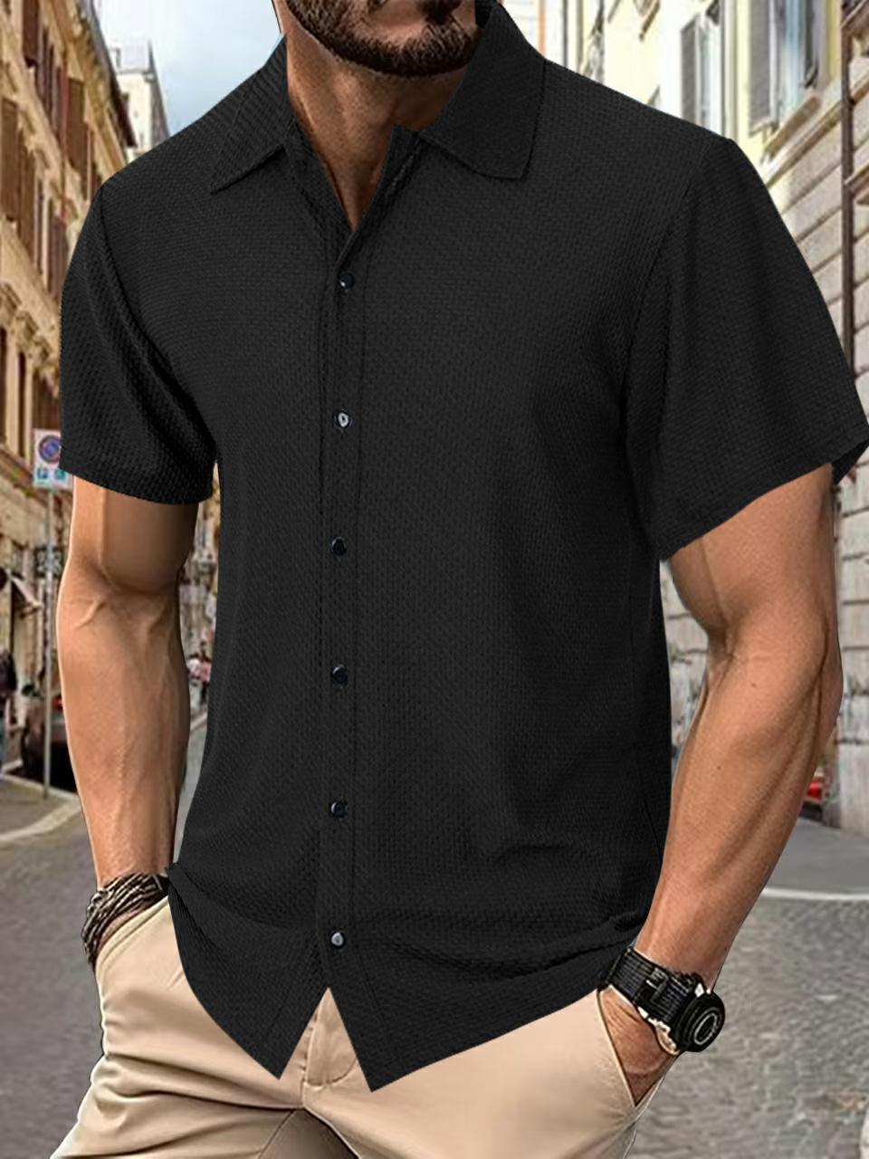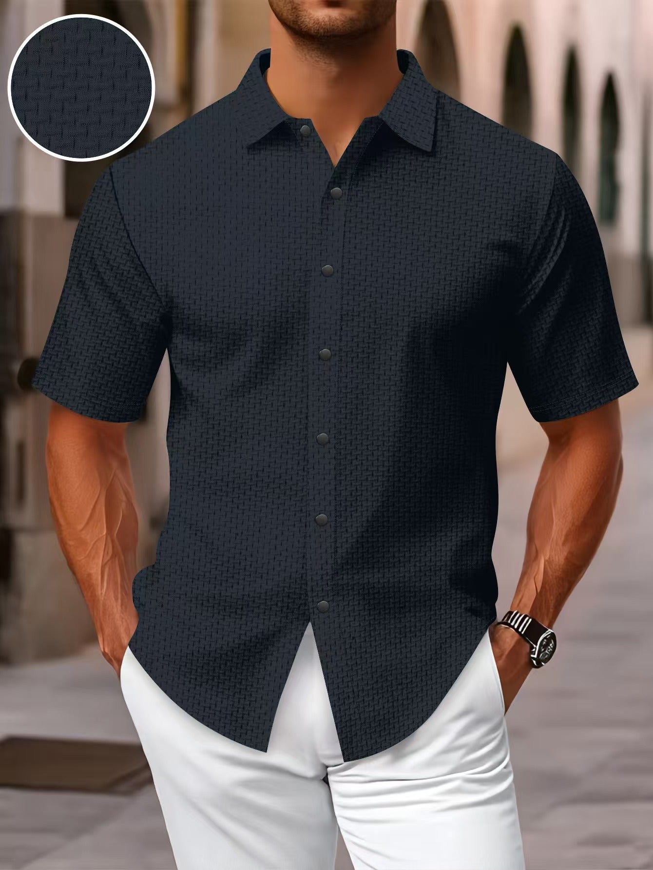 Herren Kurzarm-Hemd mit strukturiertem Muster und dezentem Kragen Aliams
