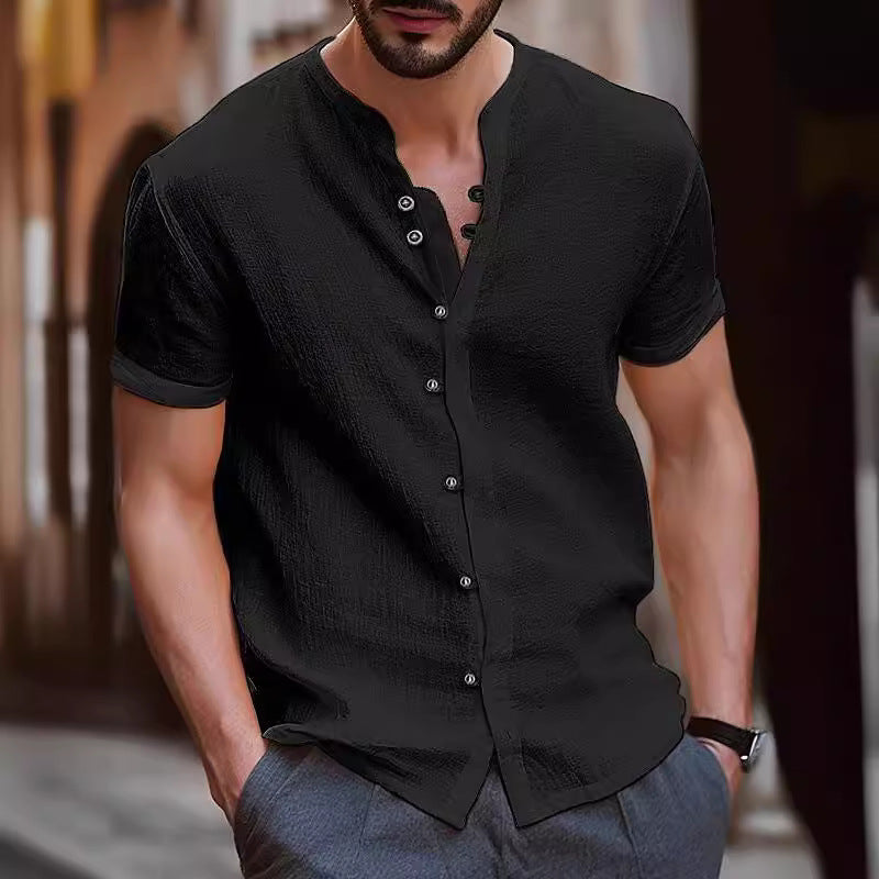 Entdecken Sie das Herren Kurzarm-Hemd mit strukturierter Oberfläche und modernen Knöpfen von Aliams – das ideale Kleidungsstück für stilbewusste Männer, die Wert auf Komfort und Eleganz legen.