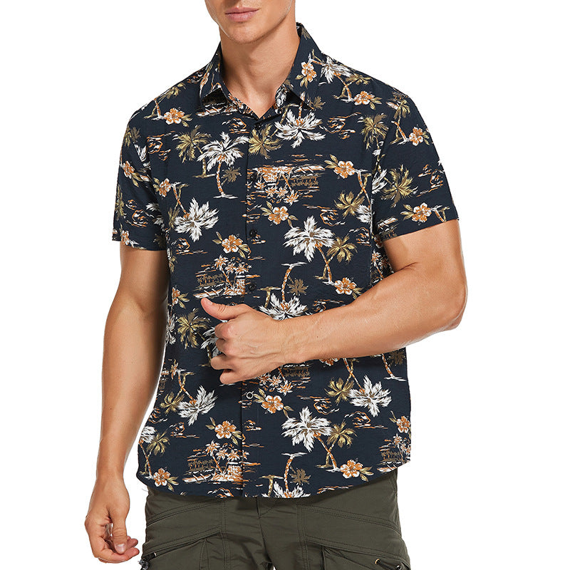 Herren Kurzarm-Hemd mit tropischem Druck und leichtem Material Aliams