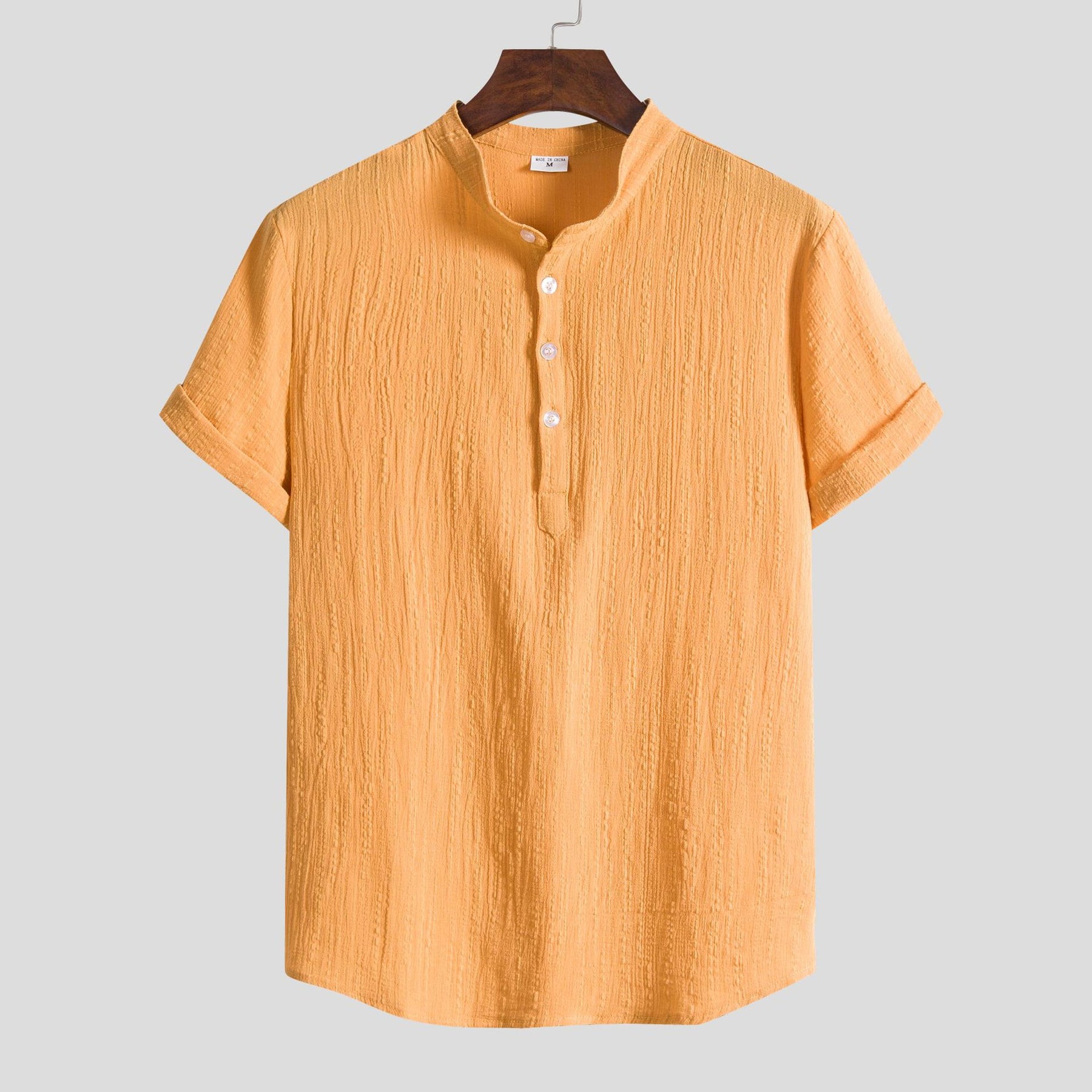 Herren Kurzarm-Hemden mit strukturierter Oberfläche und knöpfbarem Stehkragen Aliams